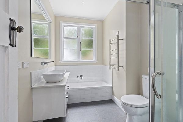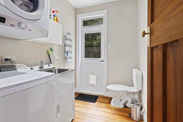 Cute cottage in city-end Karori, featuring 3-4 bedrooms, two full bathrooms (plus an extra loo in the laundry), whiteware included, and all nestled in a large, well-established garden.