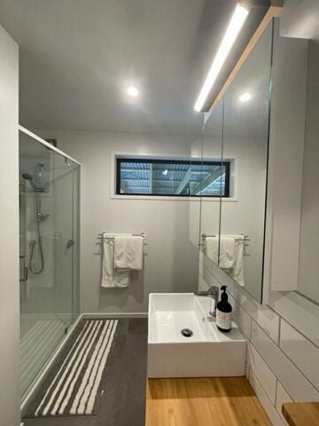 Modern Bathroom: Complete with a shower, toilet, basin, and an extra separate toilet for convenience.