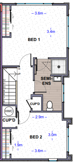 Second bedroom size is 3.6m x 3.0m