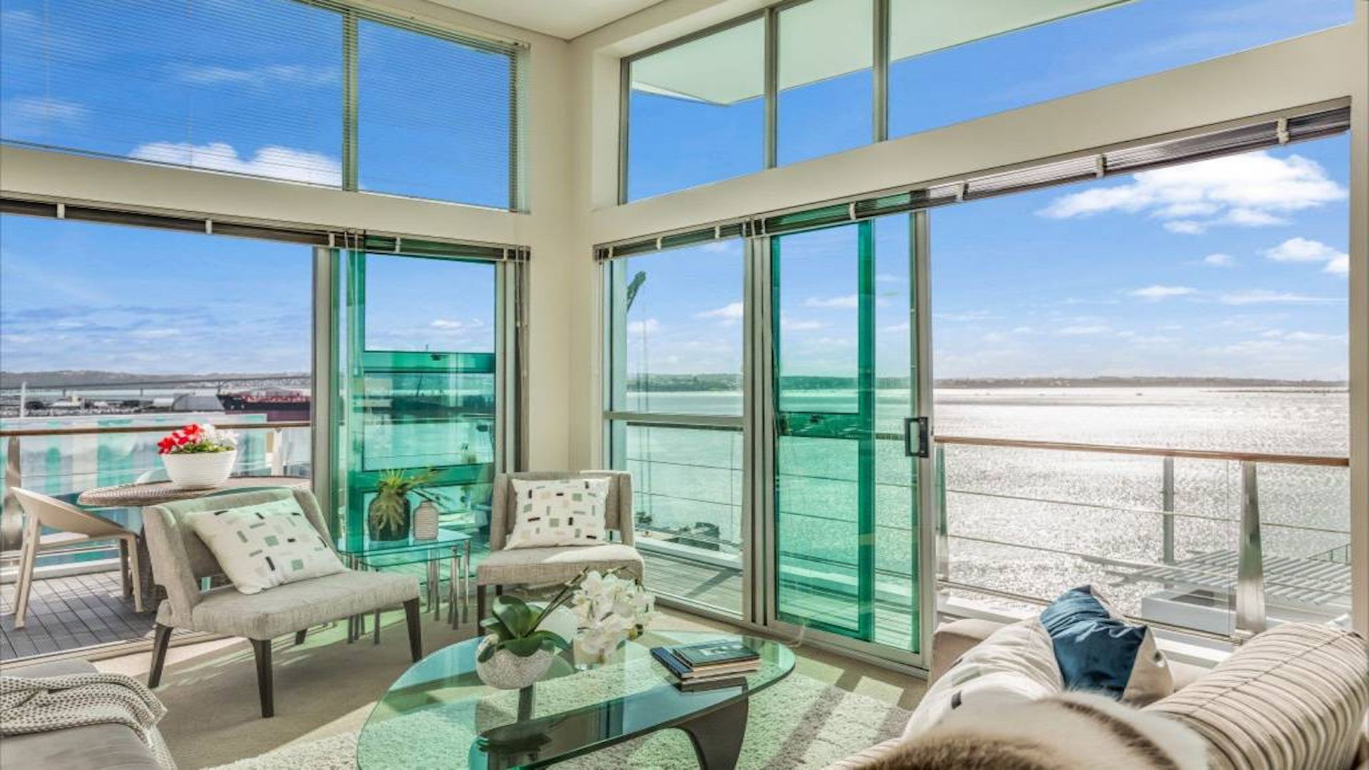 Rare opportunity to rent Princes Wharf's, Shed 22's apex, split-level apartment with 270 degree water frontage, wrap around deck and one of Auckland's most spectacular and engaging views.