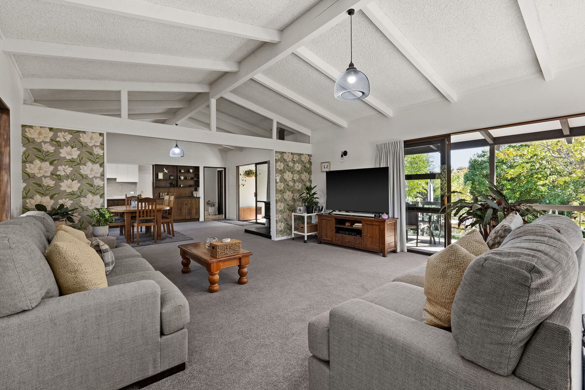 Inside you'll find open plan living and dining warmed by a cosy fire, a modern kitchen and airy gallery leading to three bedrooms and two classy bathrooms. All of which are complimented by a large verandah overlooking an extensive wooded garden, a perfect spot to enjoy a morning coffee or evening entertaining.