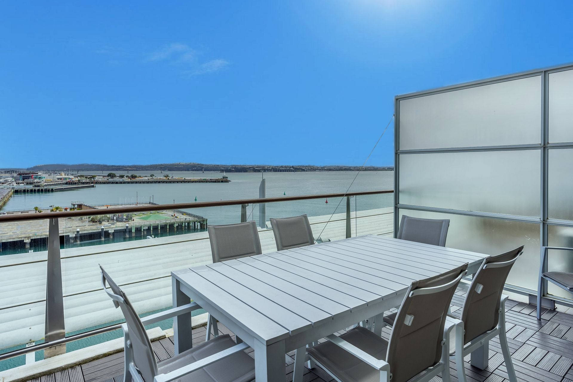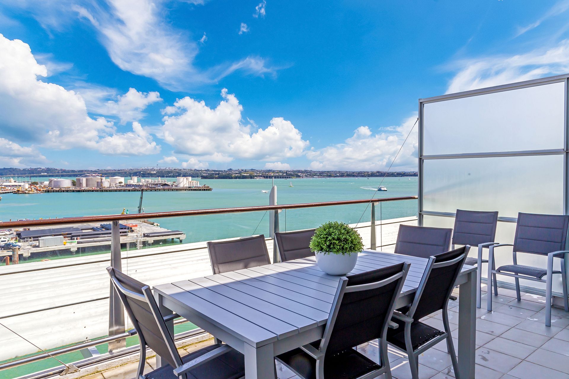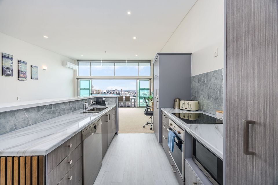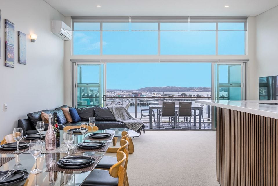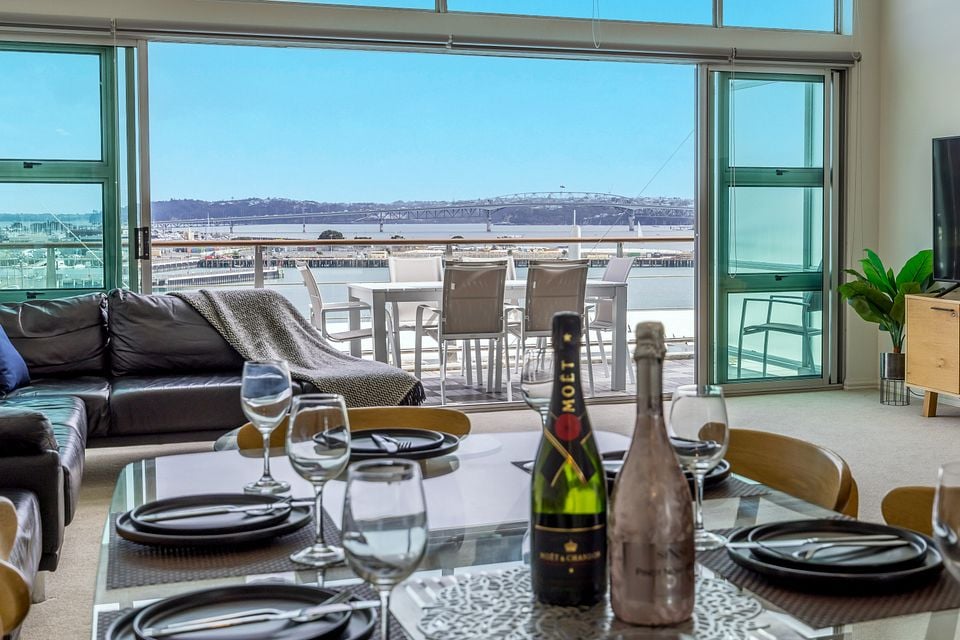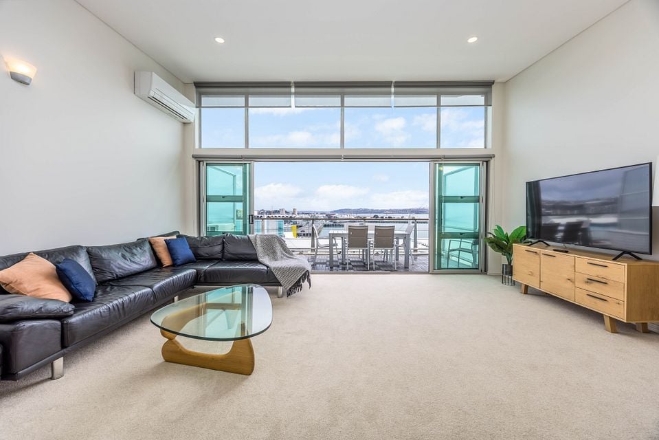 Breath-taking 180 degree waterfront views from this luxurious penthouse is perfect for you to enjoy beautiful sunsets, located on Princes Wharf, right in the heart of Auckland's CBD. This is a great location for families or groups of friends to be based when exploring the city. The 3 bedroom ultra-secure apartment is bathed in all-day sun, and is easy walk to the Viaduct and Wynyard Quarter dining, Skytower, Britomart and the ferries.