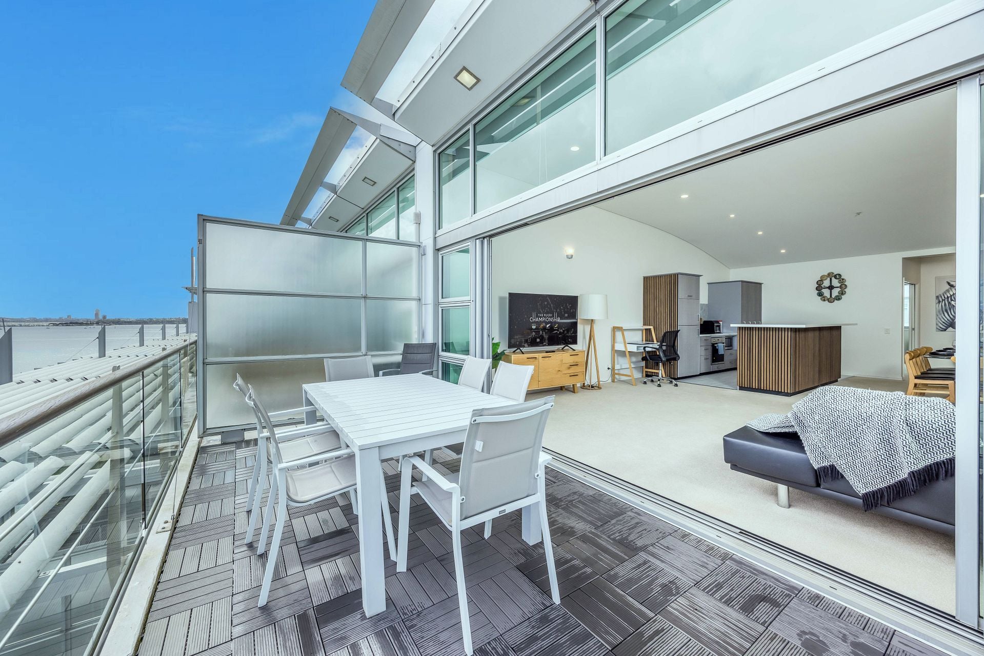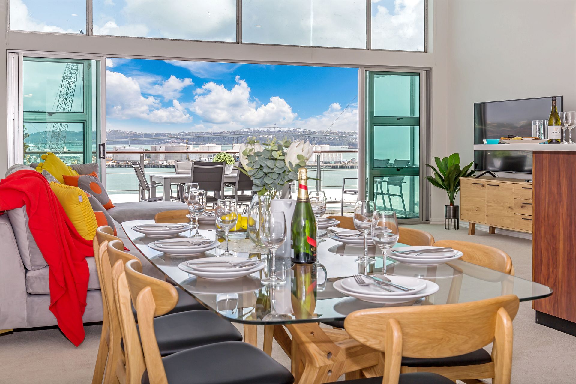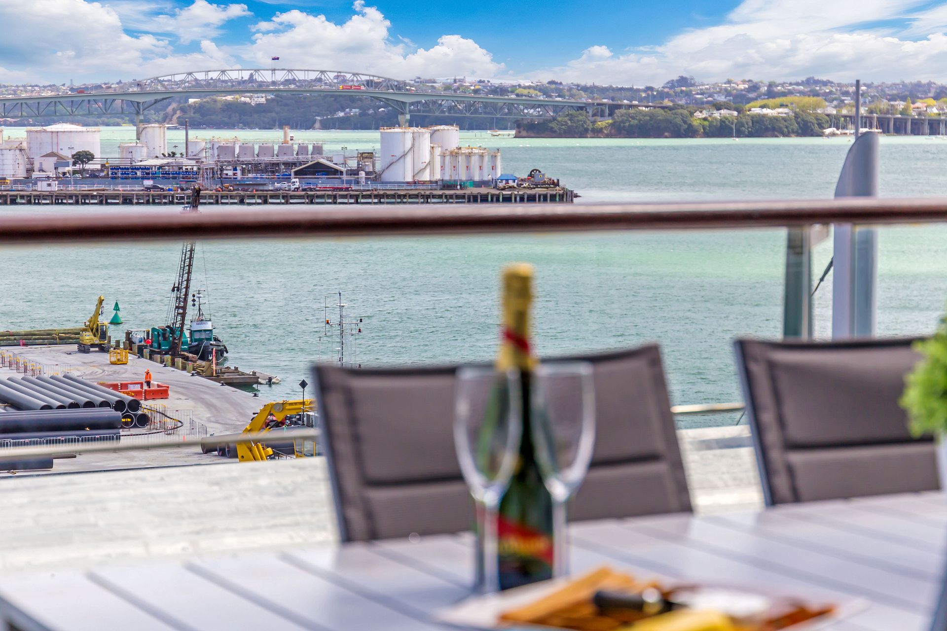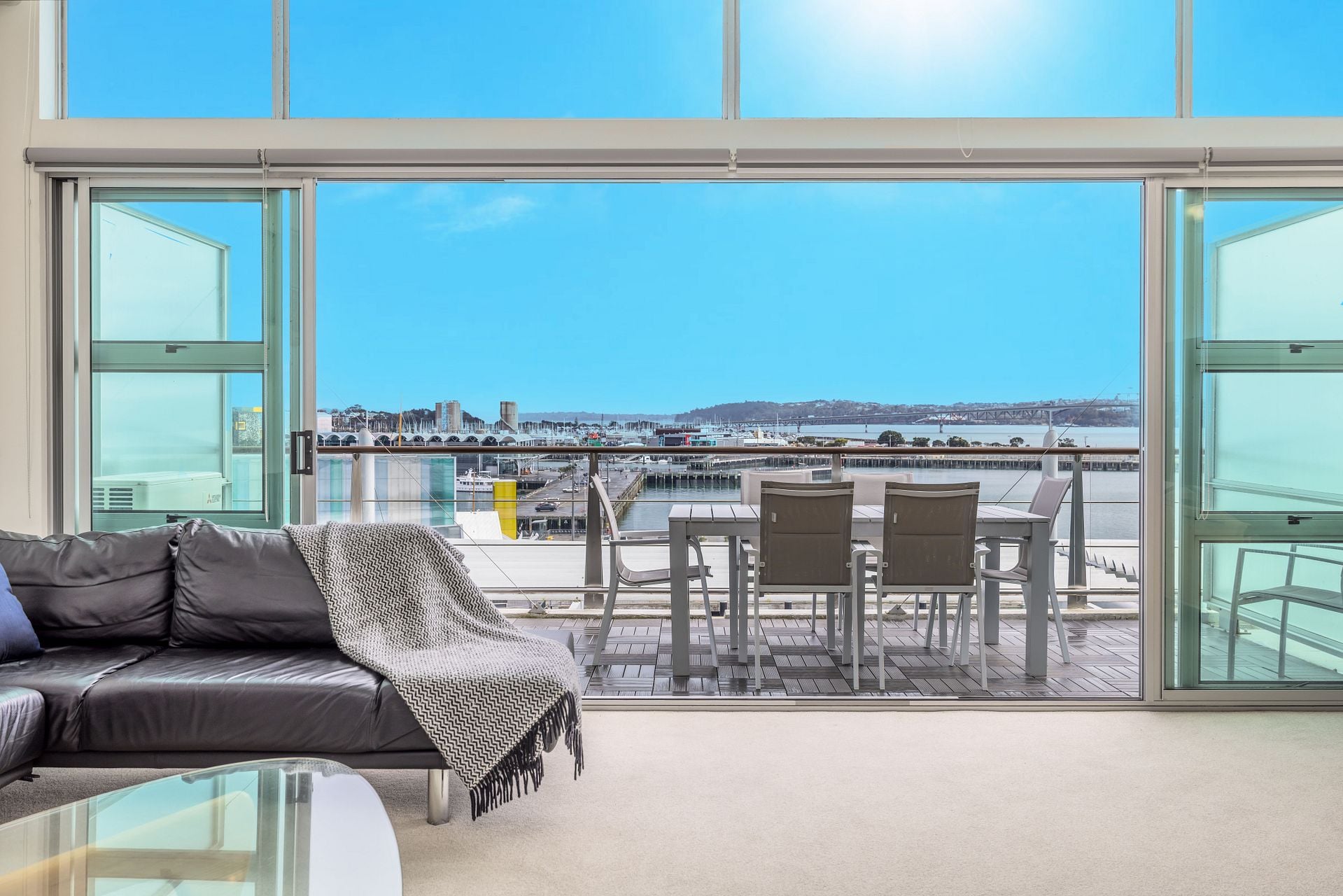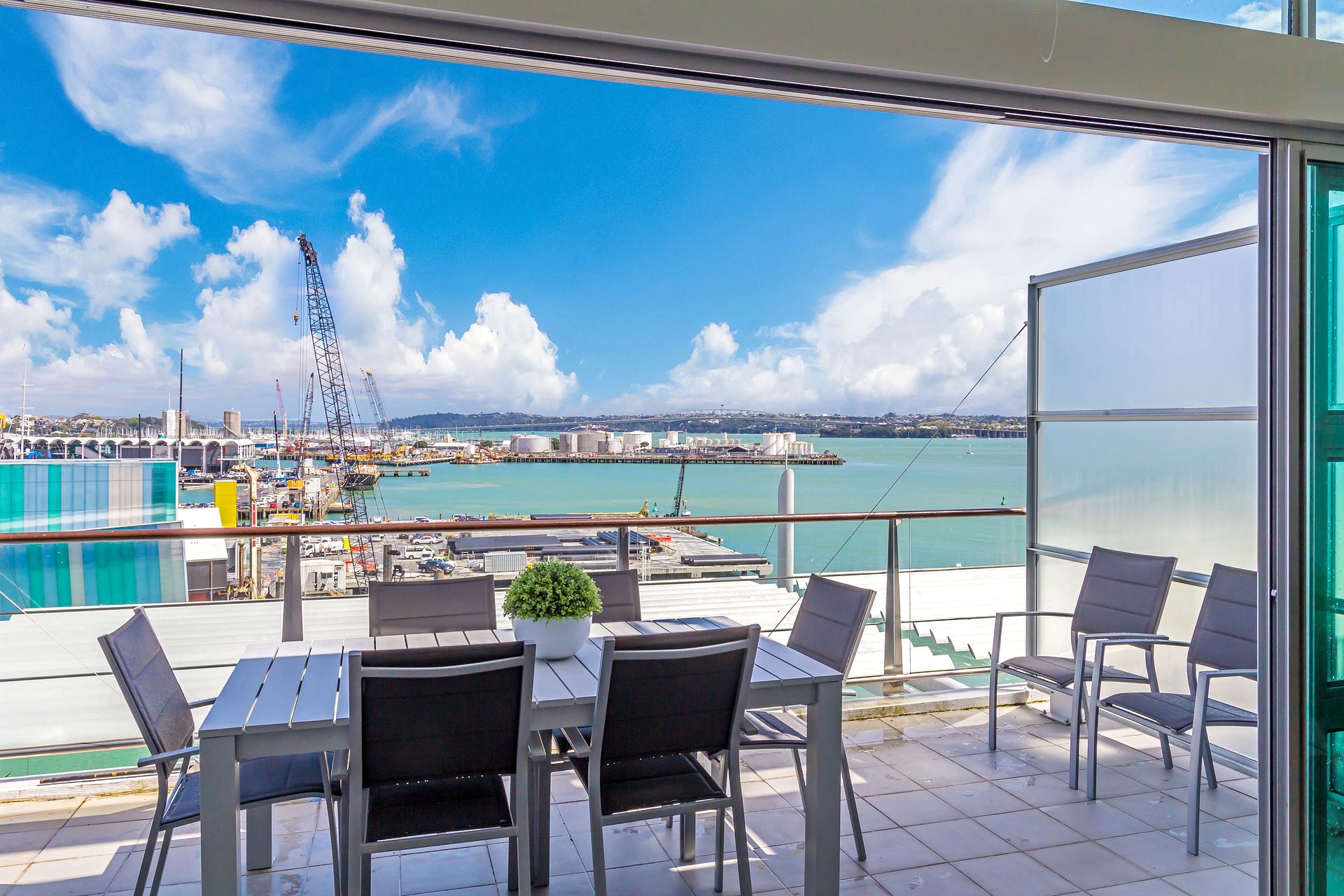 Breath-taking 180 degree waterfront views from this luxurious penthouse is perfect for you to enjoy beautiful sunsets, located on Princes Wharf, right in the heart of Auckland's CBD. This is a great location for families or groups of friends to be based when exploring the city. The 3 bedroom ultra-secure apartment is bathed in all-day sun, and is easy walk to the Viaduct and Wynyard Quarter dining, Skytower, Britomart and the ferries.