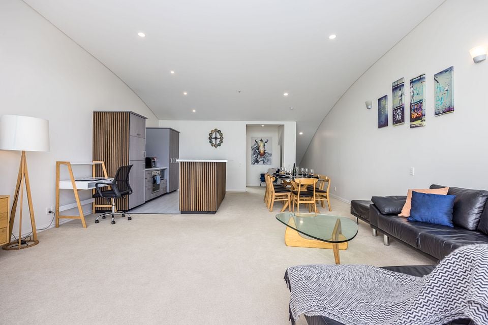 The main bathroom has a separate shower, toilet, bathtub and a washing machine and dryer. There is another bathroom on the second level with shower and toilet. 24/7 Security is on hand for your safety and to ensure peace and quiet for all residents in the apartment block. With a 3 minute walk to Queen St and the Viaduct, 10 minutes to the Vector Arena you can't get any more central.