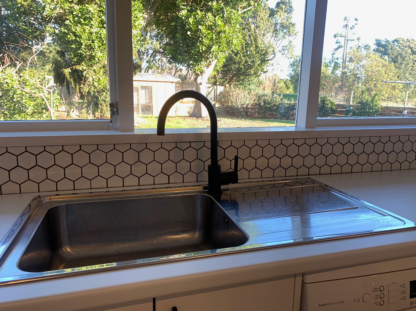 Brand new open plan kitchen with new bosch dishwasher, samsung pyro self-cleaning oven and samsung electric induction cooktop.