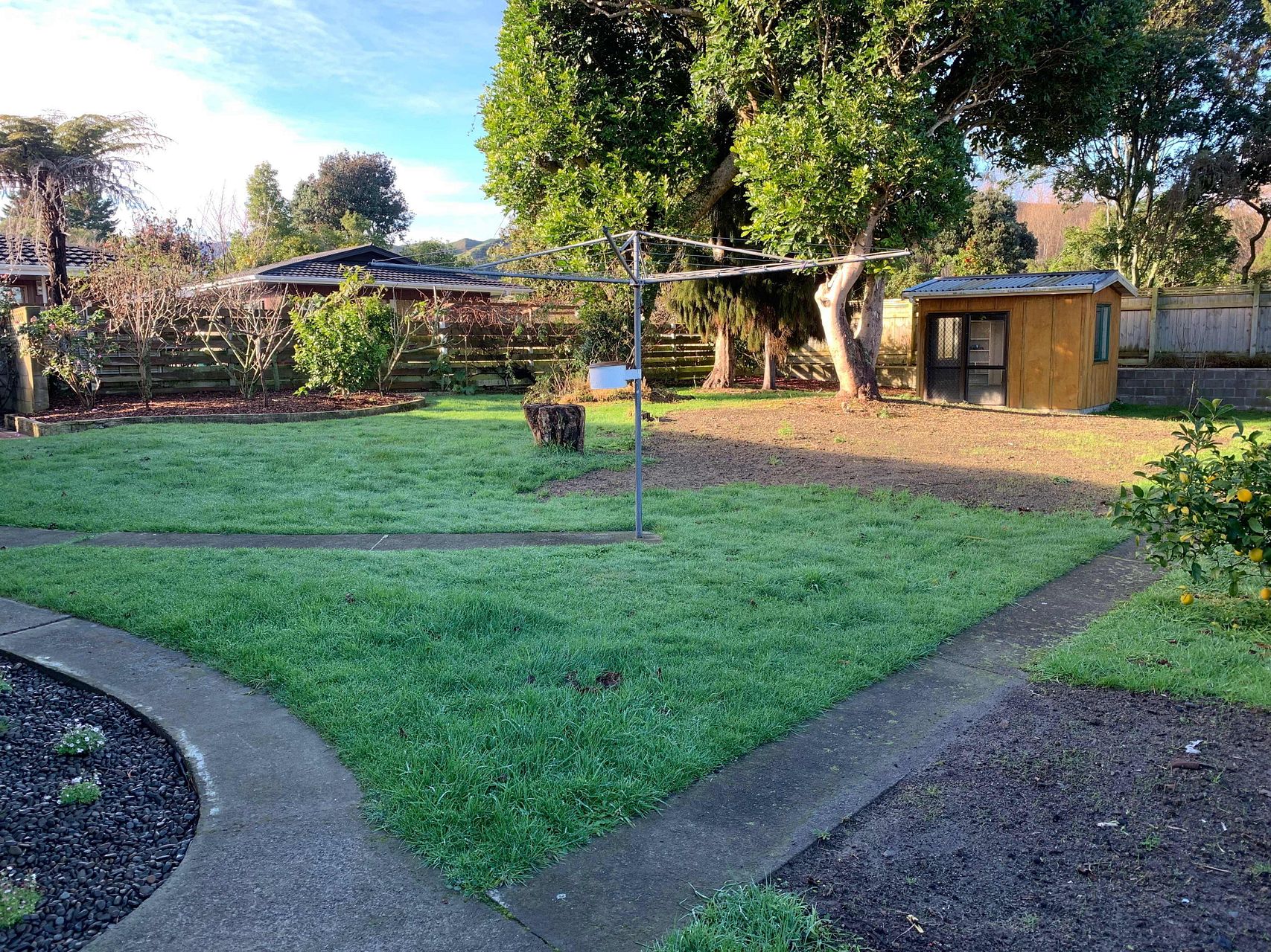 There are plenty of fruit trees - lemon, orange, lime, feijoas, peachs, apricot, grapes, passionfruit, plums.