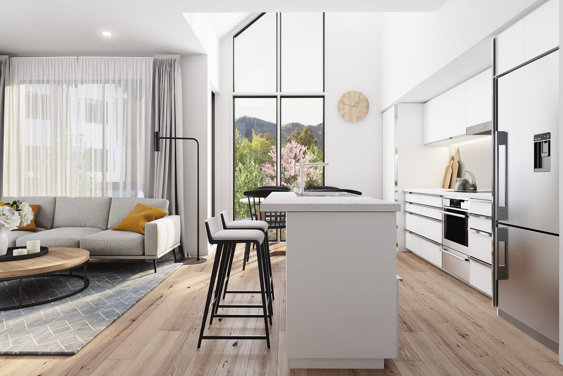 - Open plan kitchen and living/dining area - premium appliances (F&P DishDrawer) and stone bench top