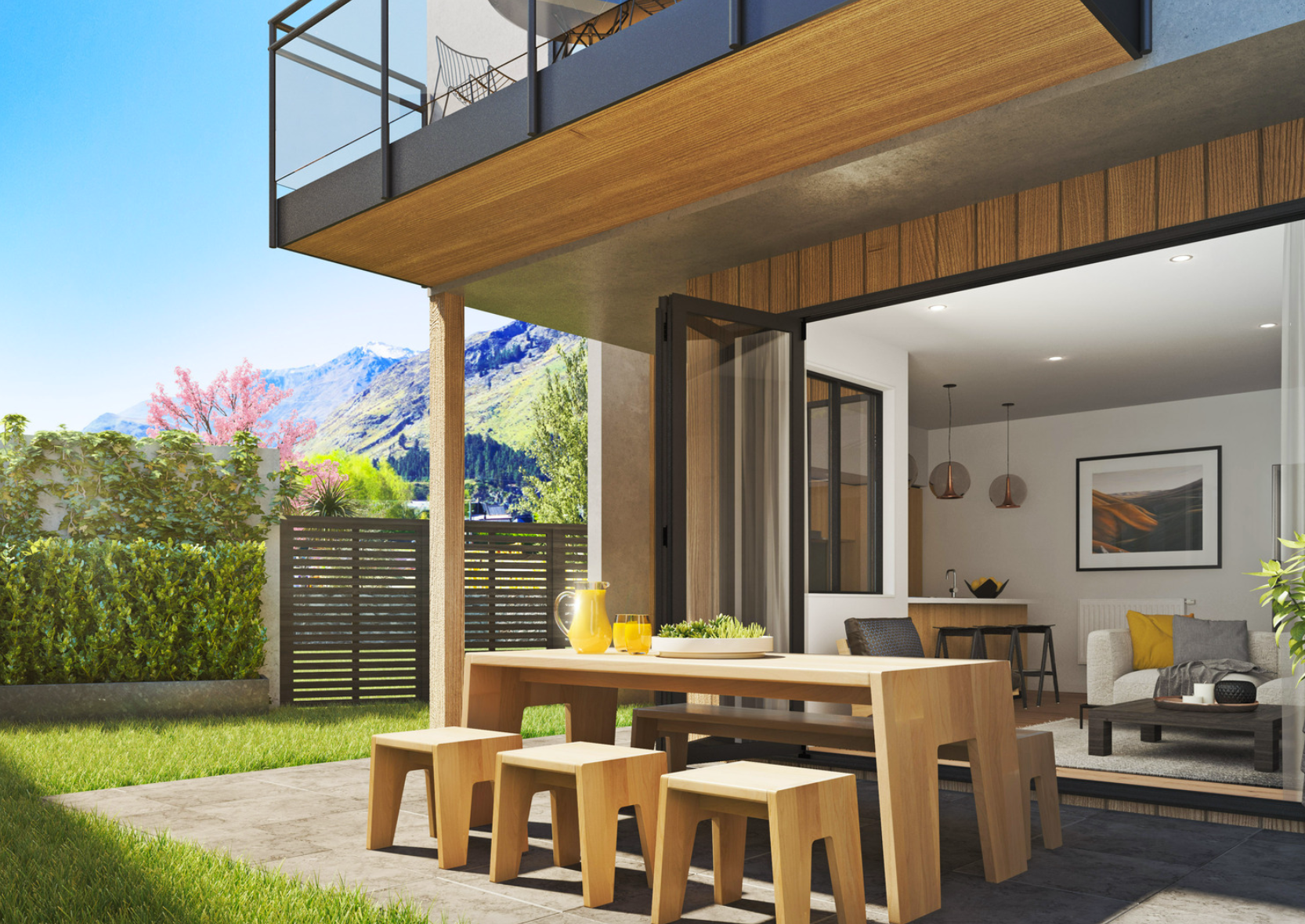 Newly completed, architecturally designed two-bedroom, one-bathroom terraced apartment located in the final stage of the Bullendale development in Arthur's Point. Ideally located 10 minutes from central Queenstown and 15 minutes from both Arrowtown and Frankton.