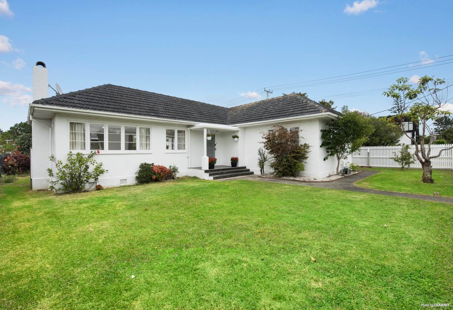 Concrete stucco home with a concrete tile roof is in excellent condition.