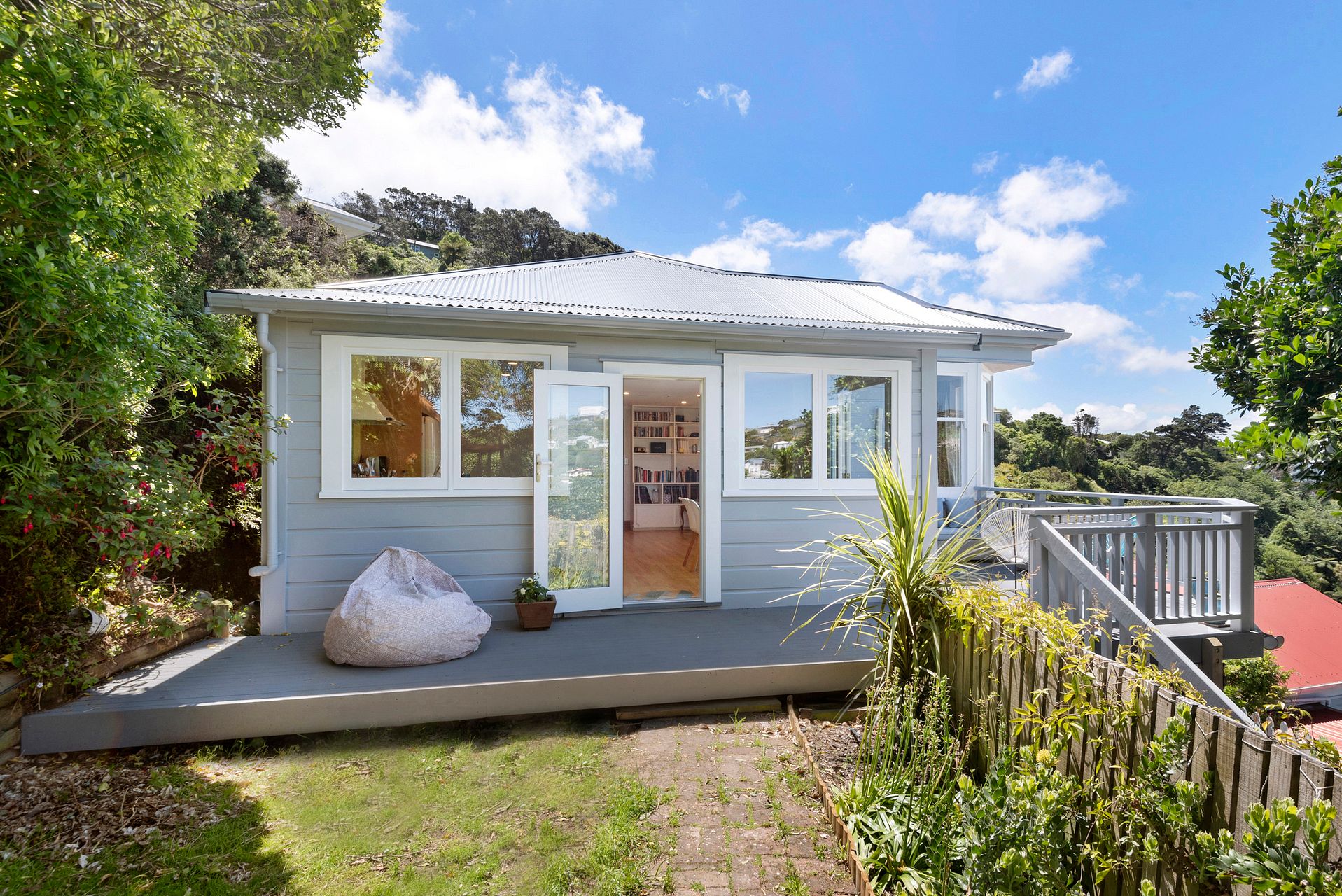 Outdoors an additional 80m2 rear deck which is perfect for BBQ’s and soaking up the sun, whilst the front wrap-around deck is perfect for relaxing with a gin and tonic in the late afternoon. There's also the bonus extra of a mezzanine sleep-out, with ample space for a home office away from the house, and a mezzanine double bed in the ceiling space.