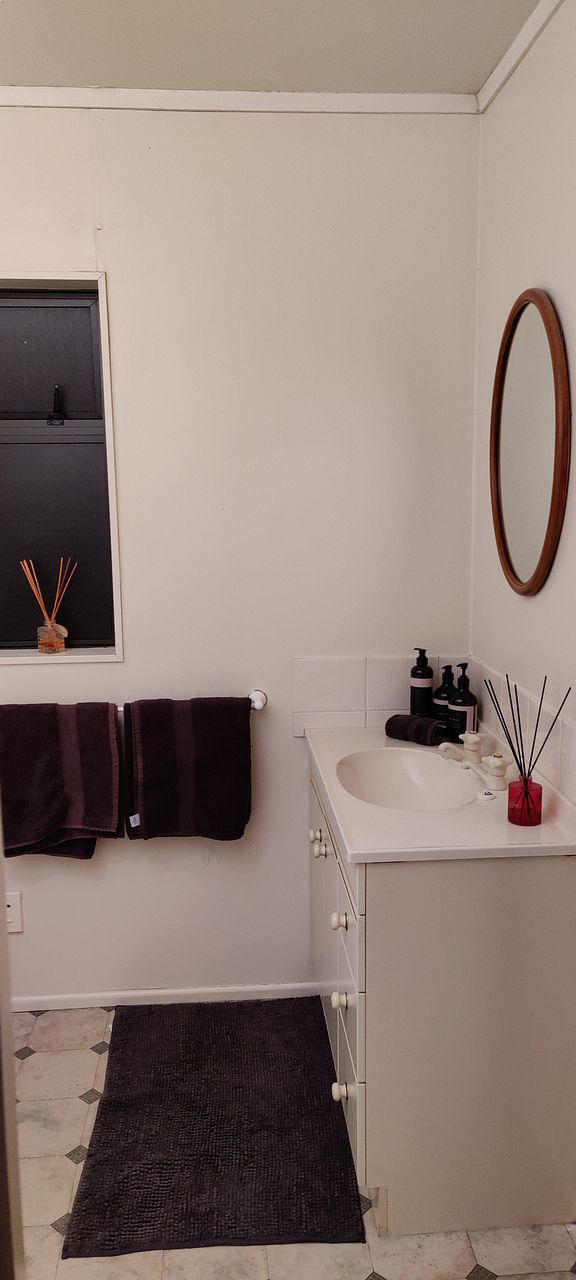 It has an ensuite and a separate bathroom(with bath) and toilet. Gas hot water(with good pressure!), gas cooker and a good gas heater. Lovely kitchen. We have a large garage and also a lovely fenced off area for kids to play in. We also have a veggie garden set up and ready to be cultivated for those winter veggies.
