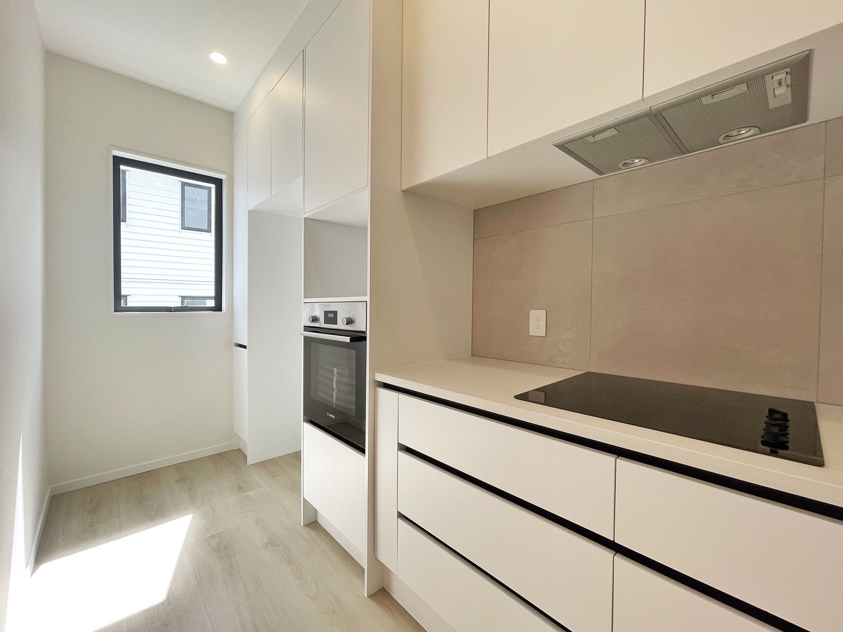 - Kitchen fitted with dishwasher, oven, waste disposer, hob and rangehood