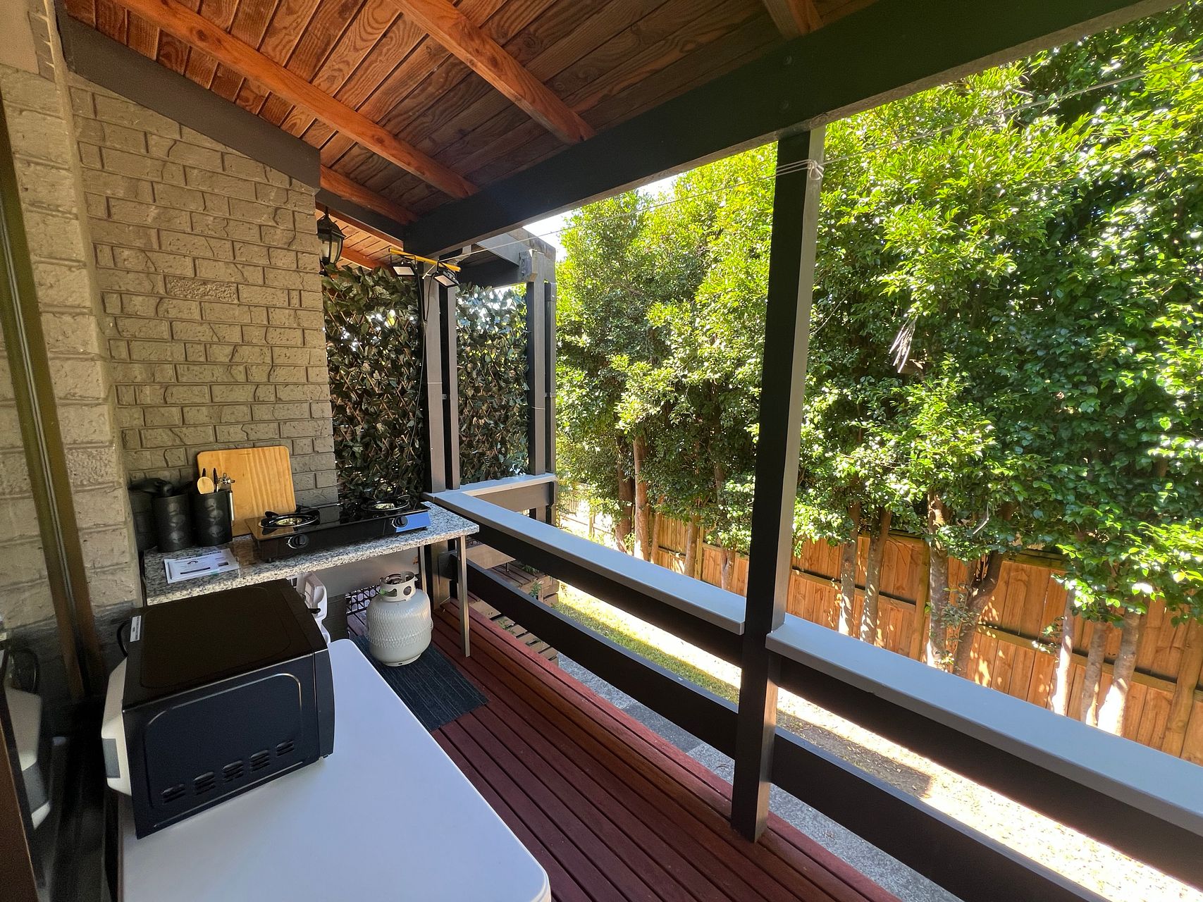 1x Cozy lounge-room with ranch-slider door that opens onto private balcony with BBQ and clothesline. Comfortable couch, TV, coffee table and additional storage/wardrobe space.