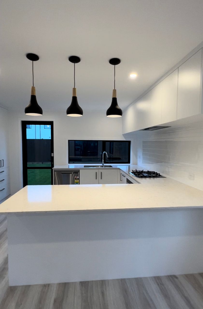 Ground level offers spacious open plan living with modern designer kitchen feature quality appliances, engineered bench top, kitchen furniture with built in microwave, oven and gas burner. The spacious single garage has internal access and includes the built-in laundry and extra WC.