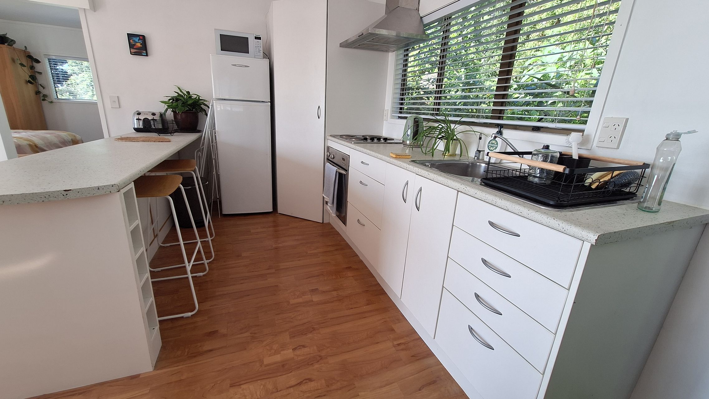 Fully furnished self-contained one-bedroom unit, with own separate entrance, shared driveway, and one off-street car park.