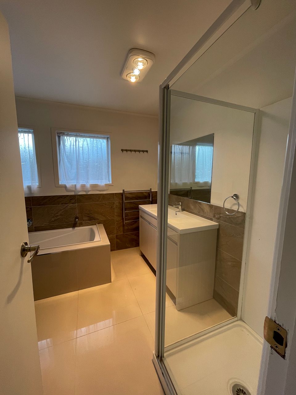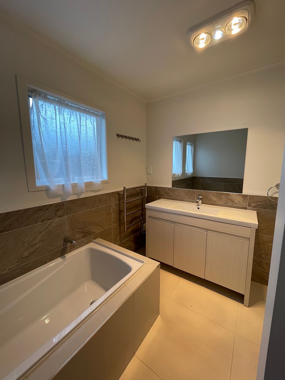 Main bathroom is tastefully tiled with separate bath, shower box and toilet. The is an additional toilet off the laundry area.