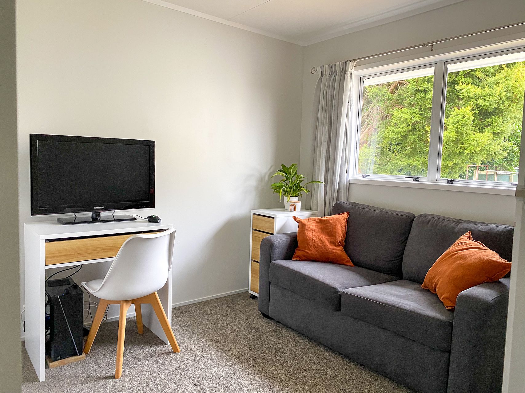 Lovely quiet area at the end of a cul-de-sac. Open plan living with stylish furnishings and great sized fully equipped kitchen. Heat pump, gas hot water. Internal laundry facilities (washer, dryer, tub). Large built in wardrobe in master bedroom.