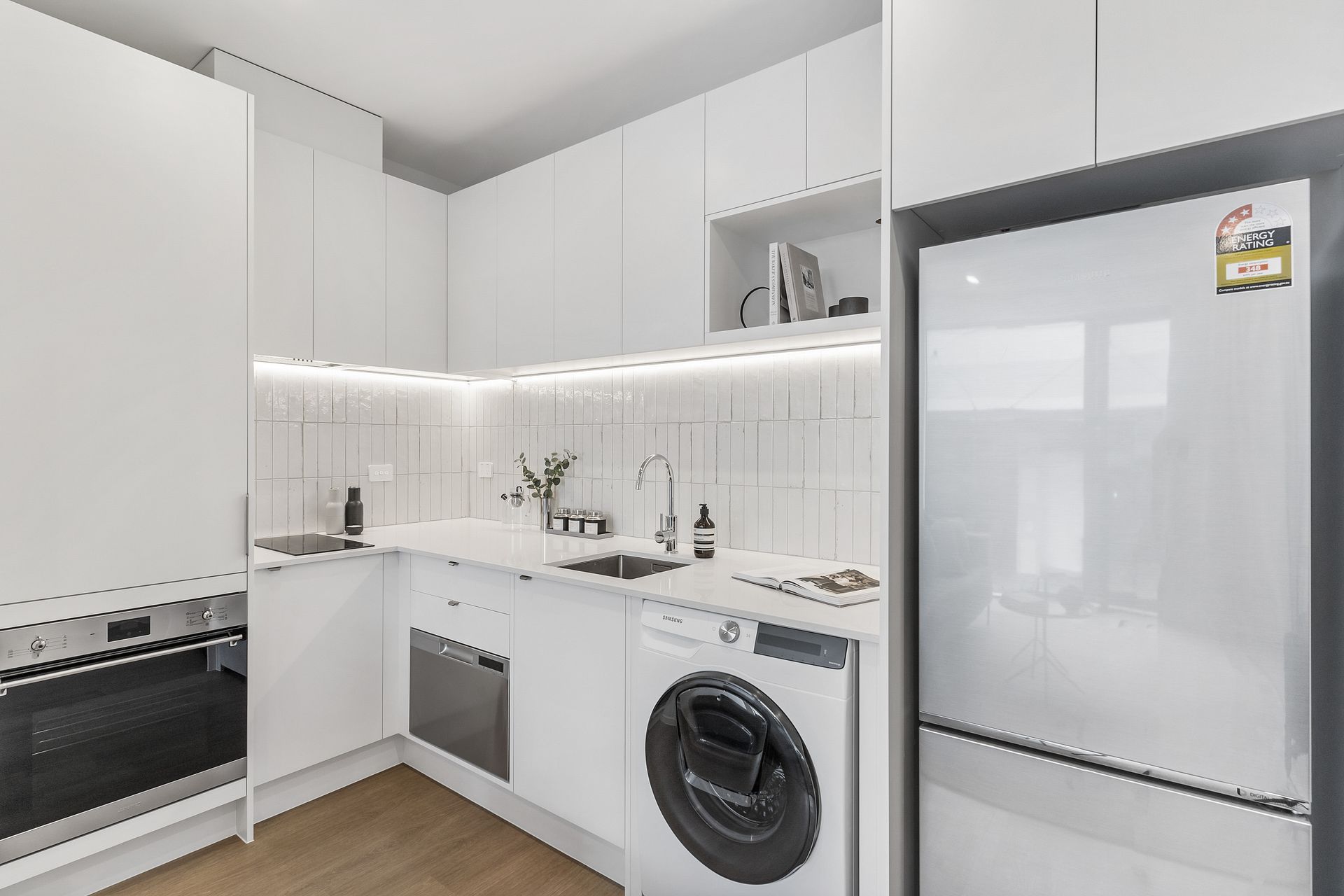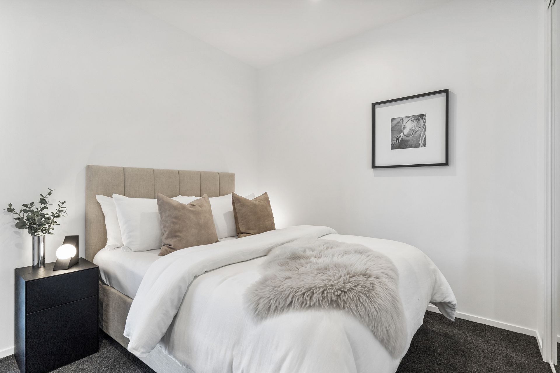 402 is on level 4 and is one of the only 1 bedroom apartments available in the entire building. The weekly rent of $595 includes a stainless steel fridge/freezer, dishwasher, heat-pump, washing machine-dryer combo, Samsung cordless vacuum cleaner, secure bike storage, storage lockers, and a keyless entry via your smartphone.. Gated carparks are $80pw when one becomes available, but street parking is affordable and plentiful. Semi-furnished option (Queen bed, 2 seater Dining set, Sofa) available from $25pw.