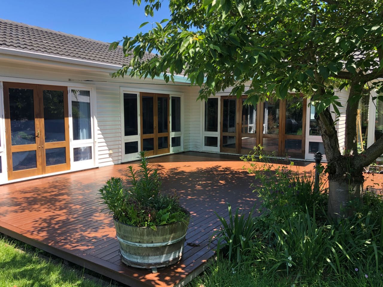 The newly remodelled executive kitchen with built-in fridge/freezer and dishwasher, will be perfect for family meals and more formal entertaining. The layout (split into two self-contained wings) would suit a larger family or two couples. Bi-Fold doors lead to expansive outdoor dining area (outdoor furniture seating 12 included). A second, west-facing deck gives exterior options even in the cool easterly. Whilst basic lawn mowing will still be up to you, we provide a weekly gardener who will keep the bulk of the work under control leaving you to simply enjoy.