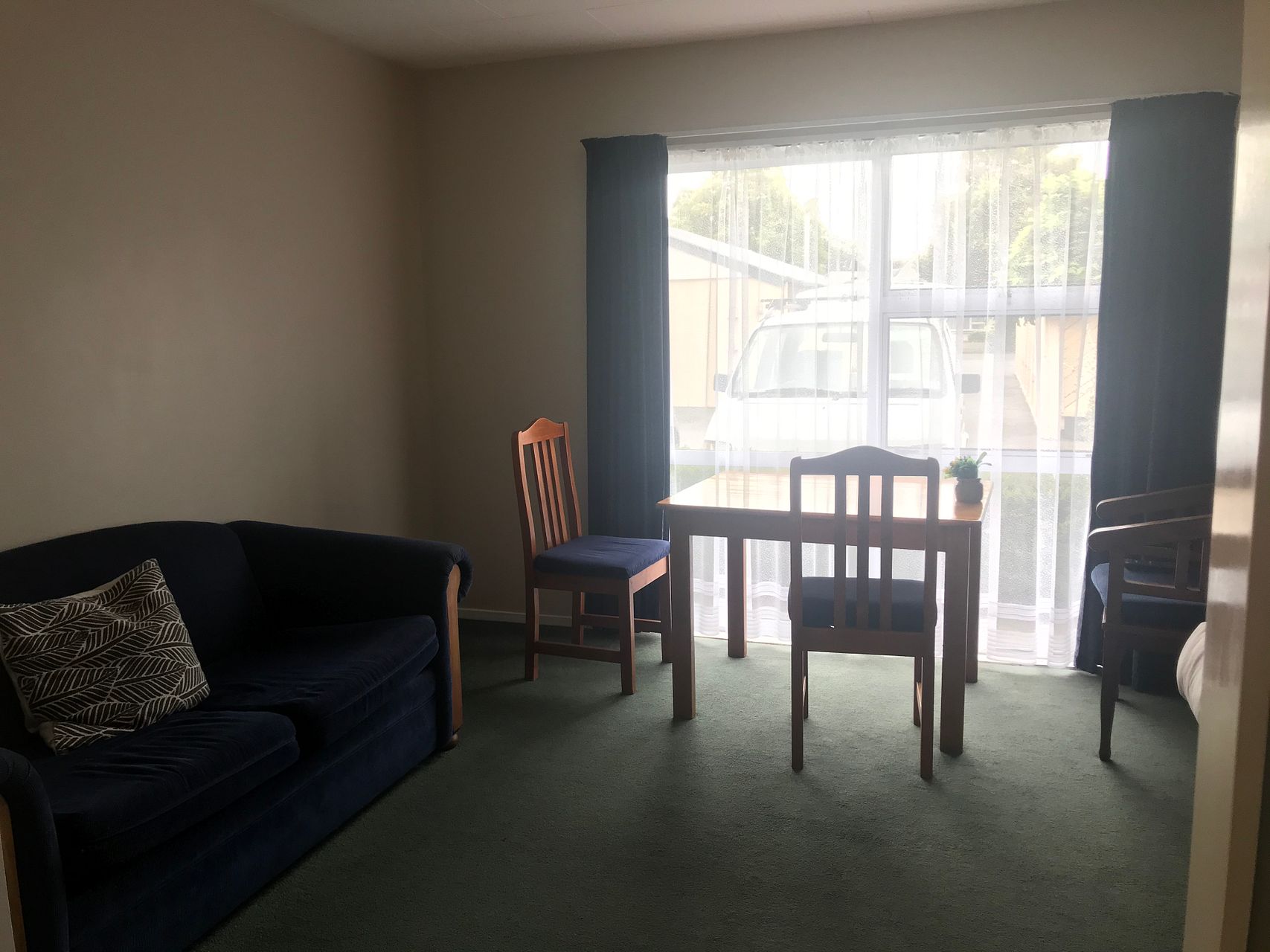 Fully furnished. Fully self contained including linen, appliances and fully supplied kitchen and laundry. Unfurnished may also be an option. Flat is equiped with heat pump and Freeview cable TV. Free low speed Wifi also available. Off Street park. This unit is in a block of 4. The property was a former single storey Motel complex that is being converted to long term rentals.