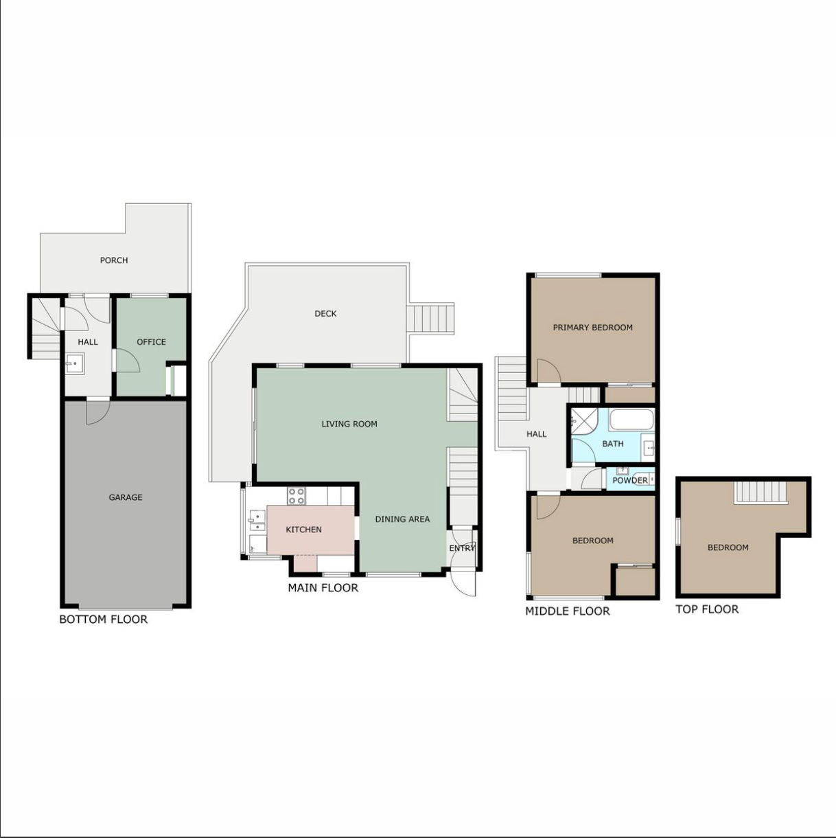 This is a 3 bedroom 1 bathroom home with a separate study in the hidden attic room. it also has a functional modern kitchen and great indoor-outdoor flow onto the deck that boasts amazing views.