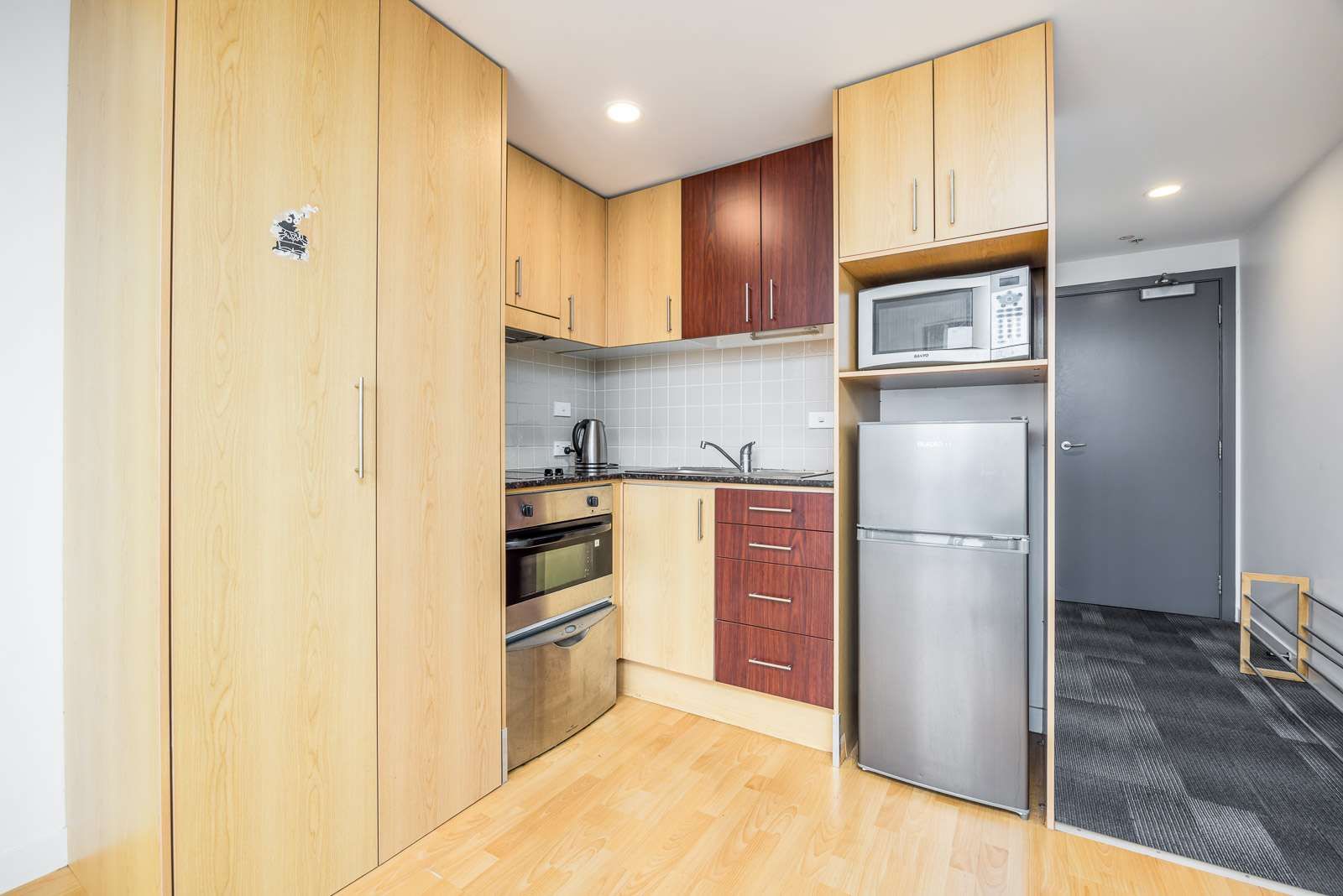 Completely ready to move in with a bed, couch (that you can also fold into a bed), TV, cutlery, bowls + plates, fridge, microwave, kettle, blender, pot and pan, dishwasher, washer + dryer, freezer and other kitchen requirements.