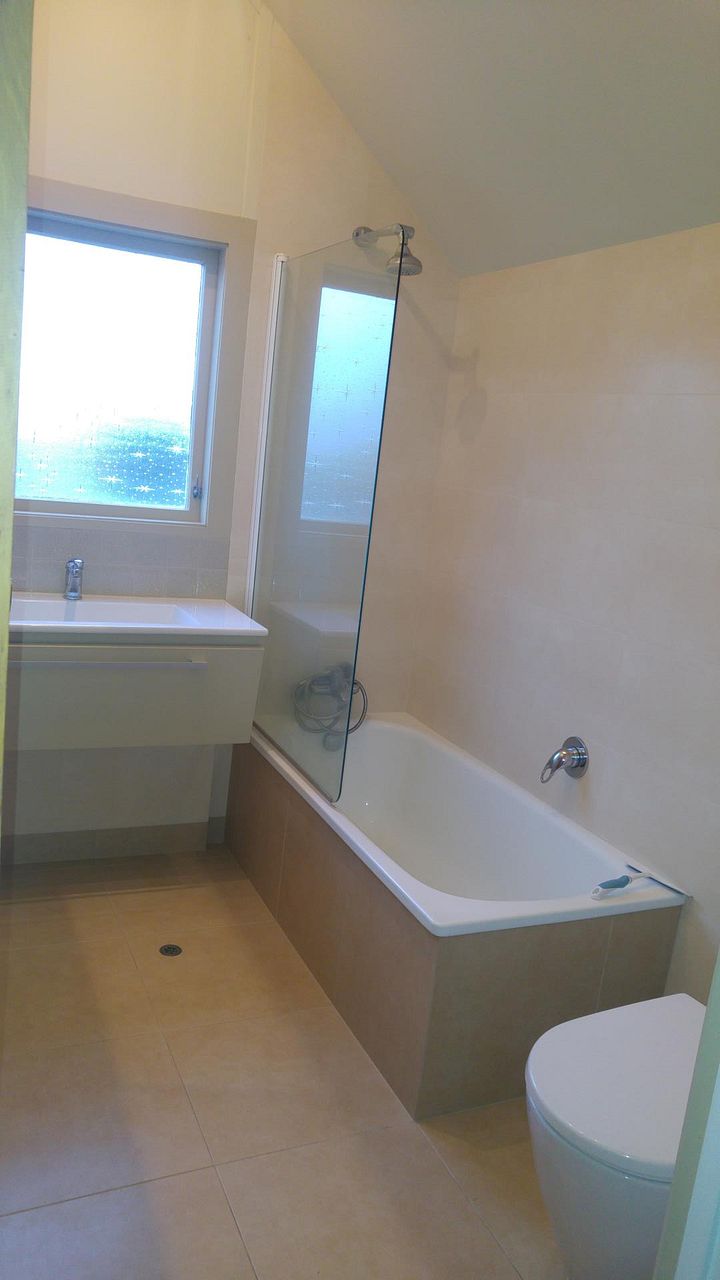 * Renovated bathroom with tiled floor + underfloor heating, bath & SatinJet shower (mains pressure hot water)