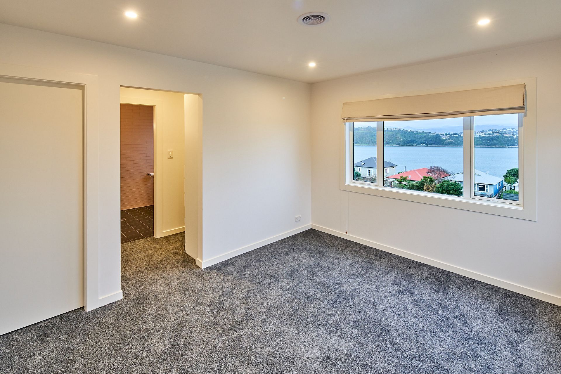 - Large open plan kitchen dining and lounge with a balcony and views to Evans Bay.
