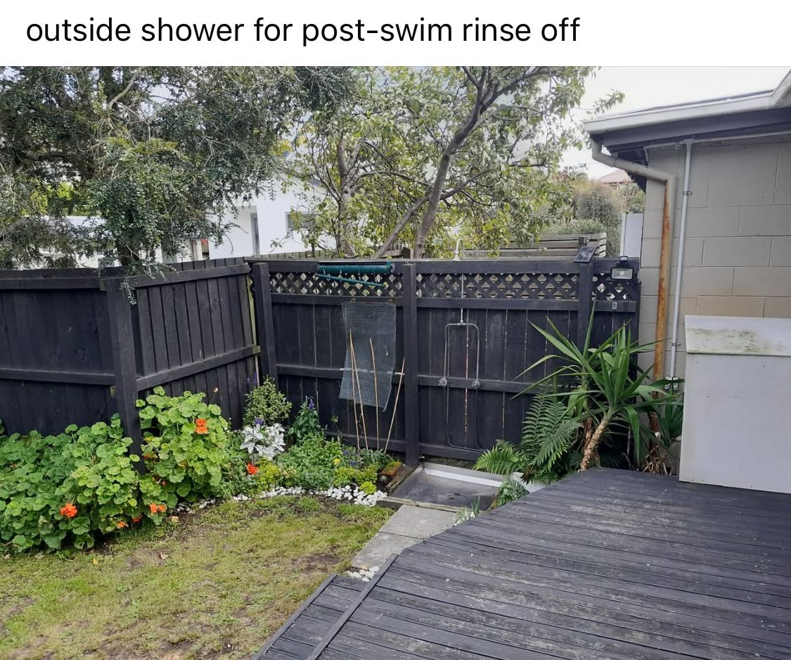 Small front and back yard patio area and garden. Shared laundry with 2 other units . Outdoor shower for after surf. Biggish garden shed will fit bikes & surfboards . Looking for long-term single or couple .No more than 1 child, as it is a small space and the second room is more of an office than a bedroom but it does fit a single bed.