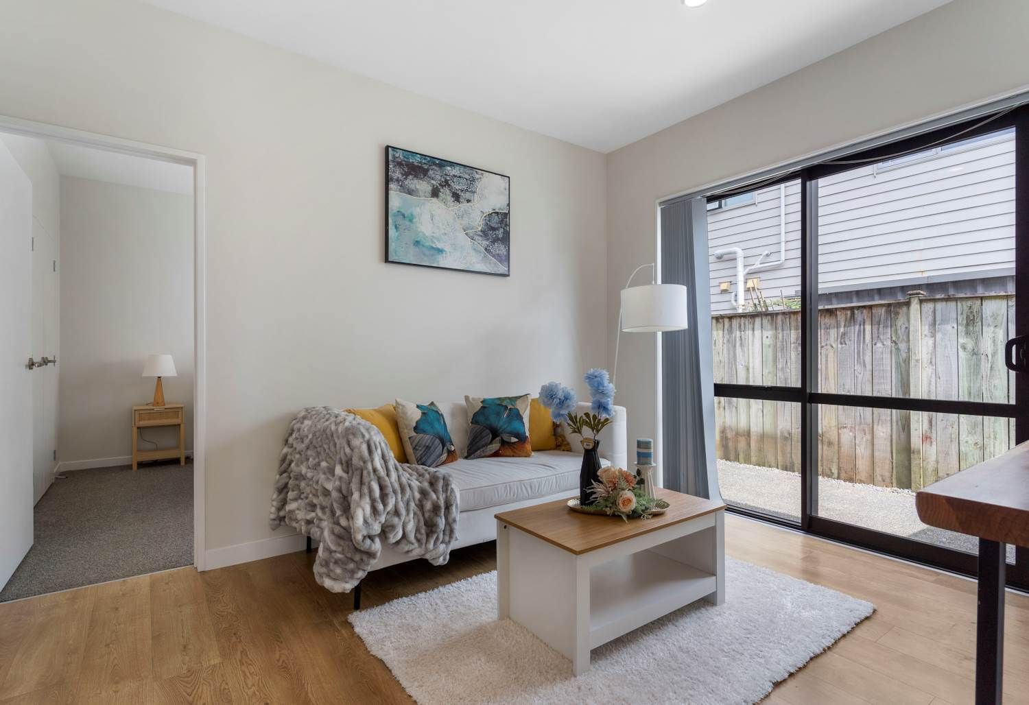 Living Area: Tidy open-plan layout connected to the kitchenette