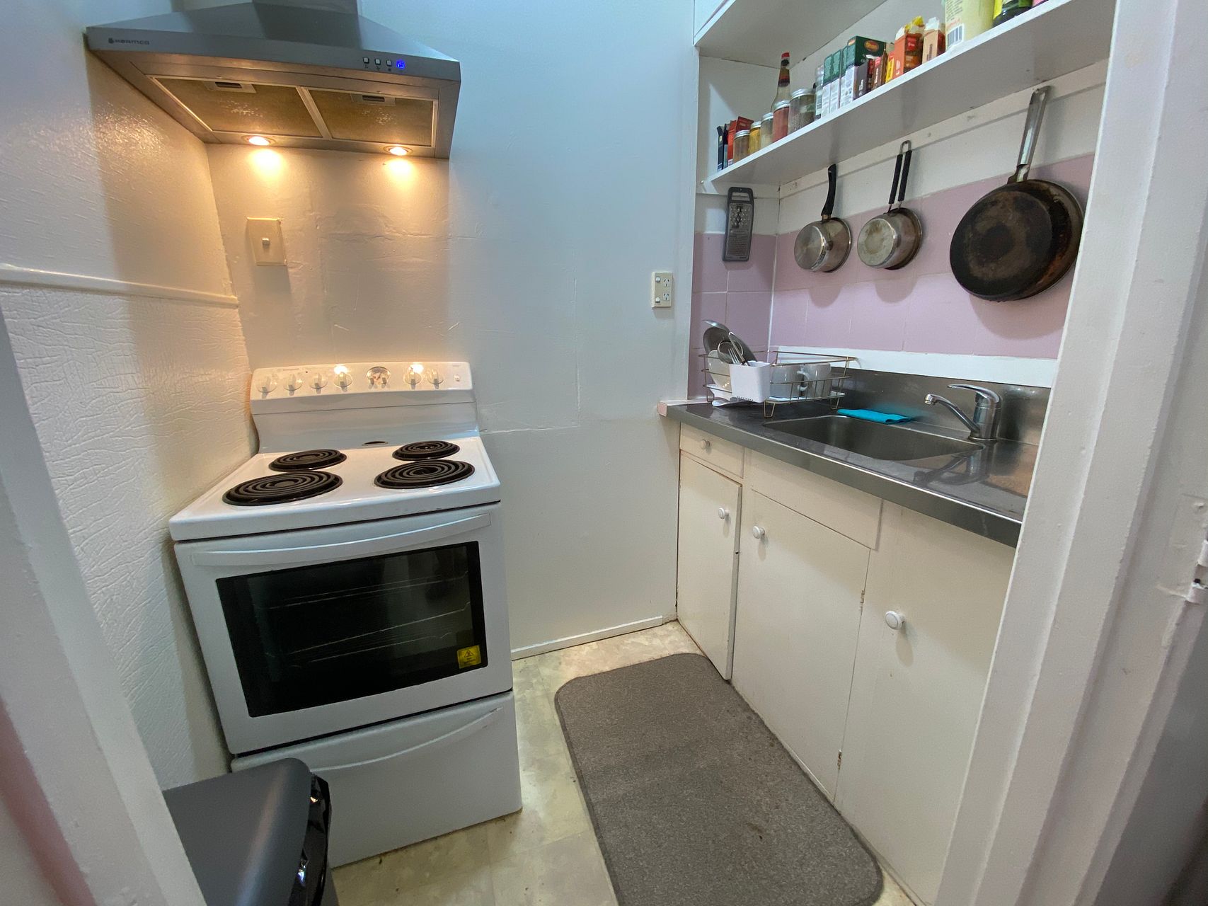 The bedroom can fit king sized bed and still have plenty of space for more furniture. The kitchen comes with electric stove top oven and has a lot of storage space for your pots and pans.