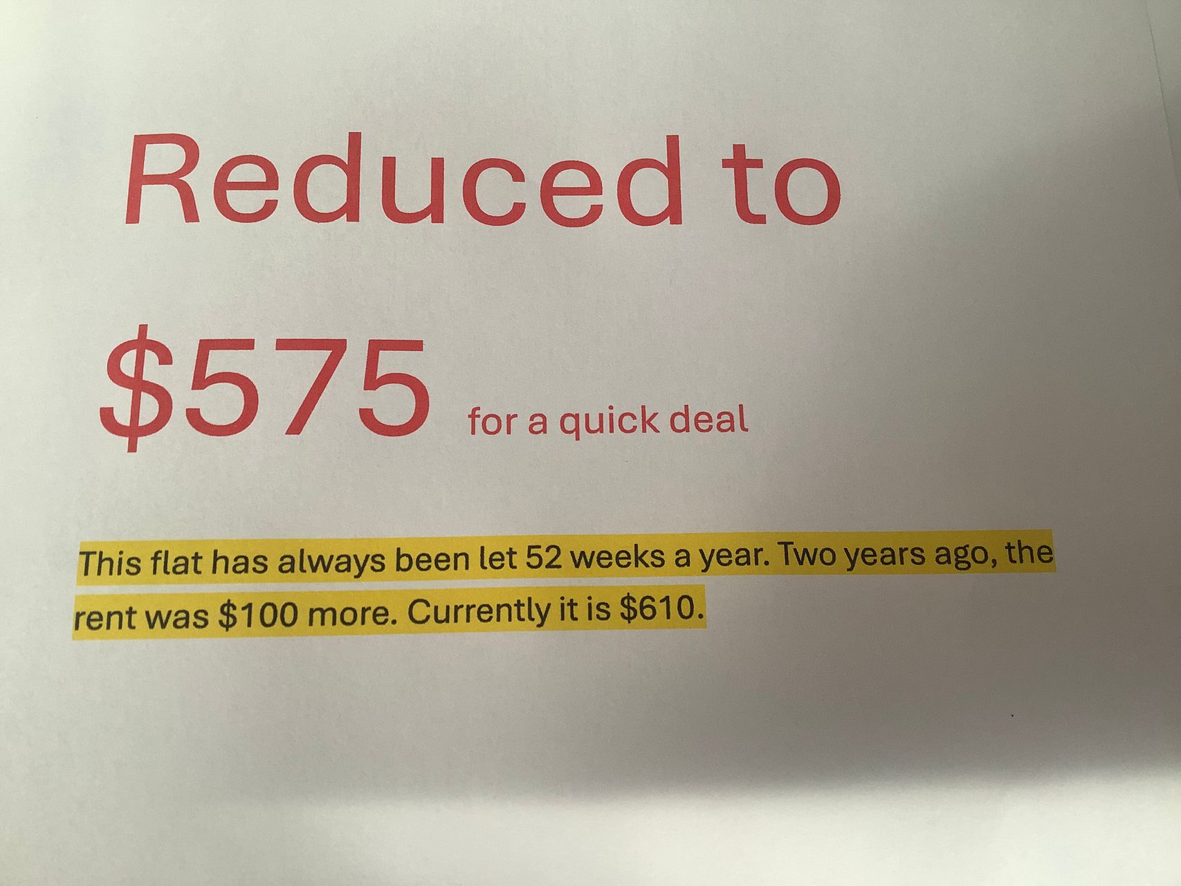 Opportunity to buy a few items from current tenants.