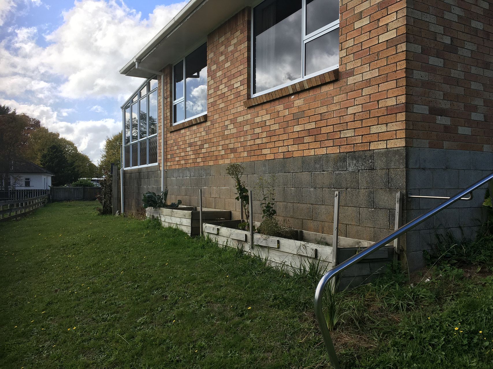Garden boxes with good sized lawn. Lots for room for the car.