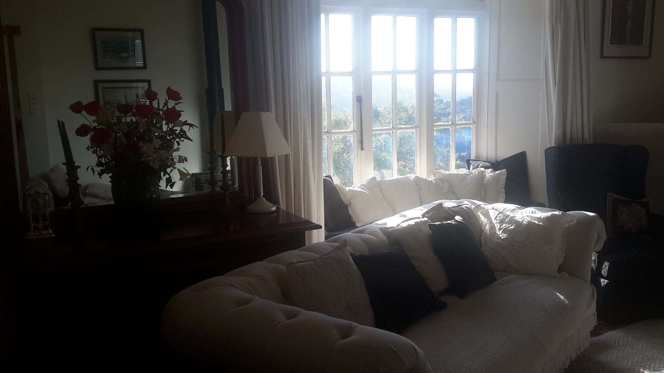 Upper flat in 1920s house, with all-day-sun and harbour views. Fully-furnished flat. Suit older, quiet couple or a single woman. Parking by front door, ie. access with no steps; they are down to the deck and garden. Wood-burner and stack of firewood.