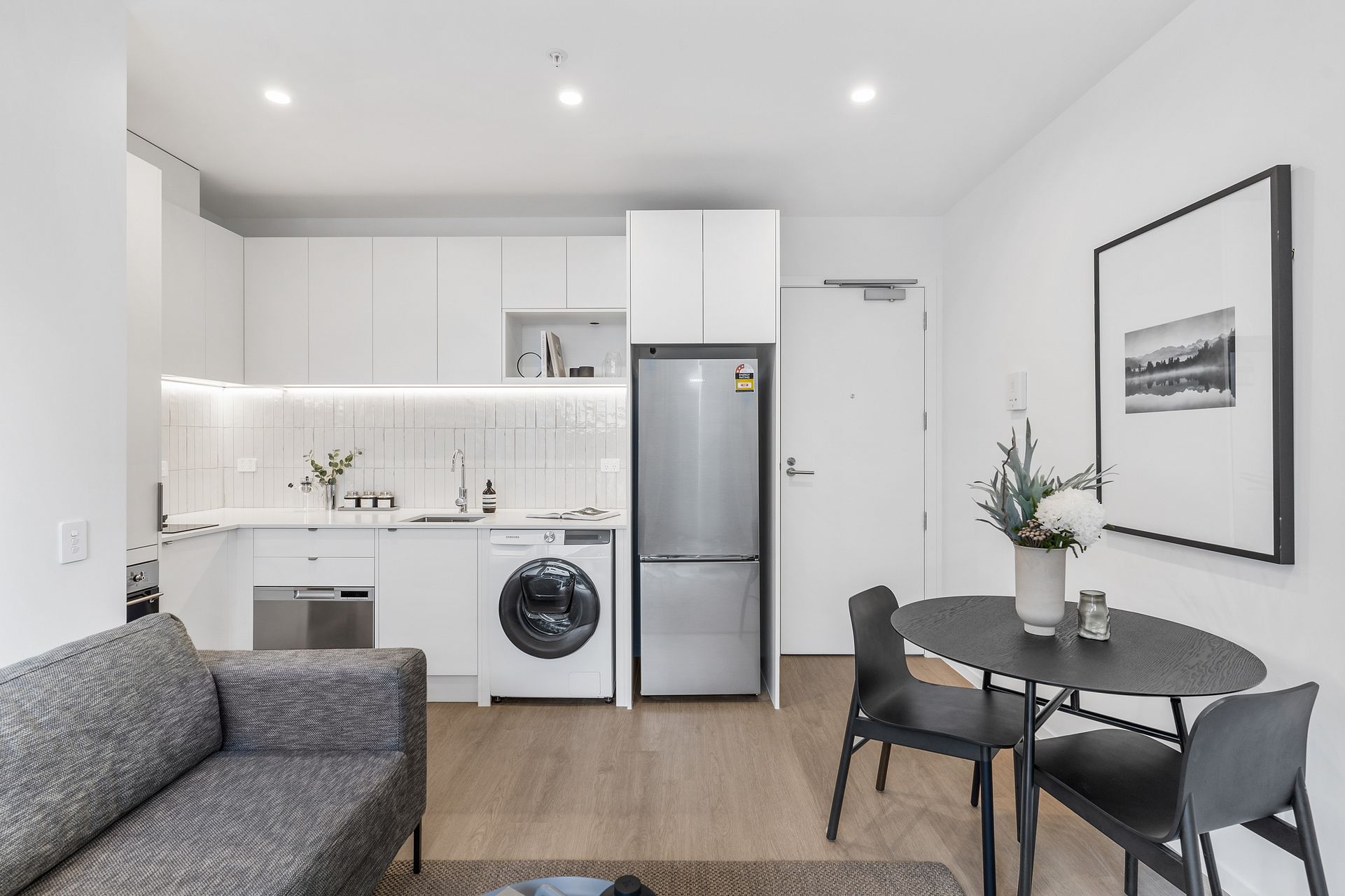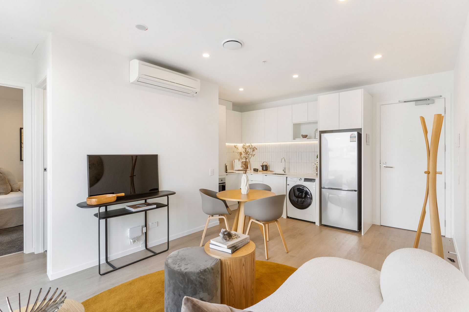 502 is on level 5 and is one of the only two 1 bedroom apartments available in the entire building. The weekly rent of $655 includes a stainless steel fridge/freezer, dishwasher, heat-pump, washing machine-dryer combo, Samsung cordless vacuum cleaner, secure bike storage, storage lockers and keyless entry via your smartphone. Gated carparks are $80pw each. Semi-furnished option available for $25pw.