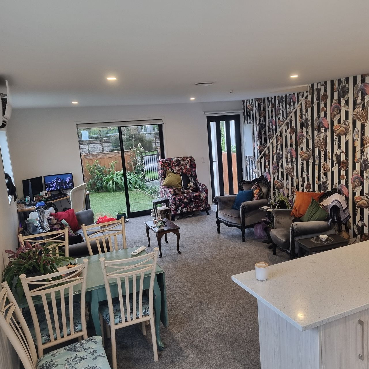 Downstairs you have open plan living, kitchen, dining and living space with a heat pump and guest bathroom under the stairs. Electric cooking in the kitchen includes the special feature of x2 ovens, and a touch of Europe with the washer/ dryer located here too. All with tiled floors and splashbacks for easy cleanup. Open your sliding door in the living area to a small sunny front garden with all the afternoon sun you can want, and on/off street parking with EV charging installed!