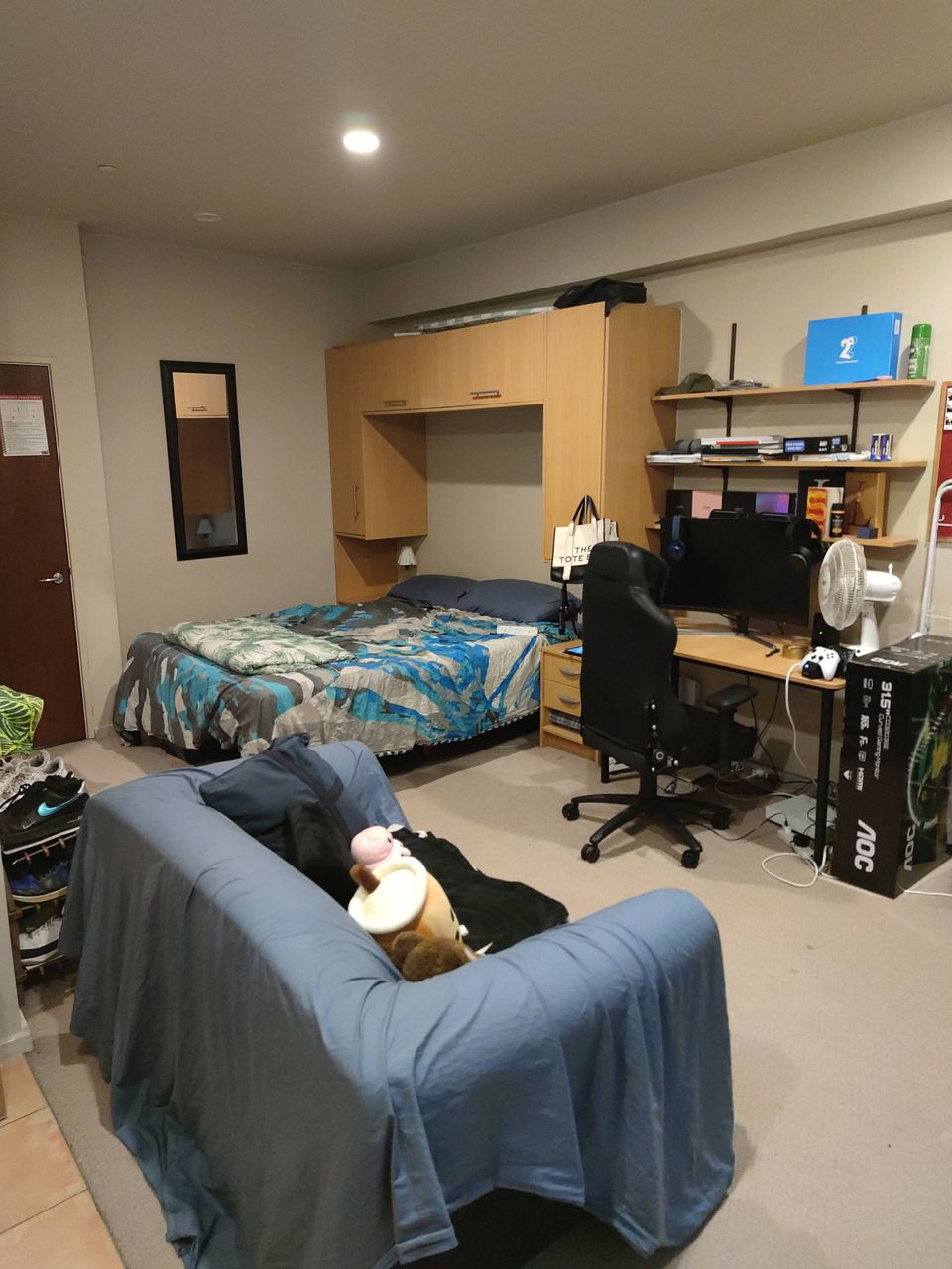 The studio comes with a kitchenette, bed and sofa. so you just need your bag of clothing to move-in.