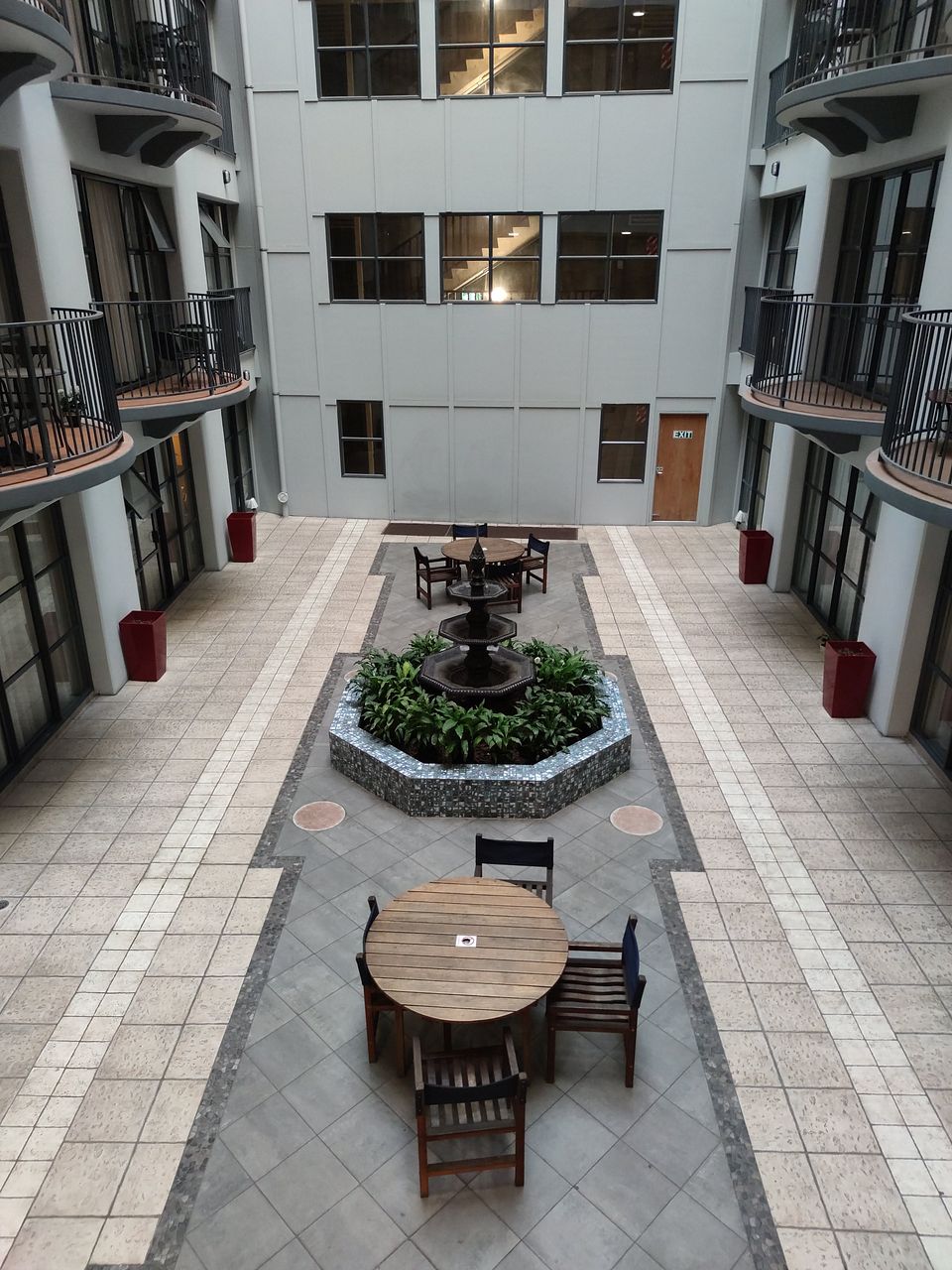 The balcony is looking over the courtyard and "the atrium" is the perfect place to unwind with a cold one after a busy day.
