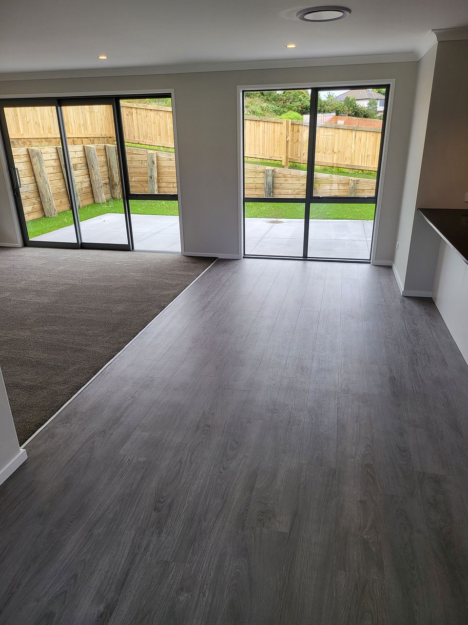 This home boasts an open plan kitchen, dining and seating area.