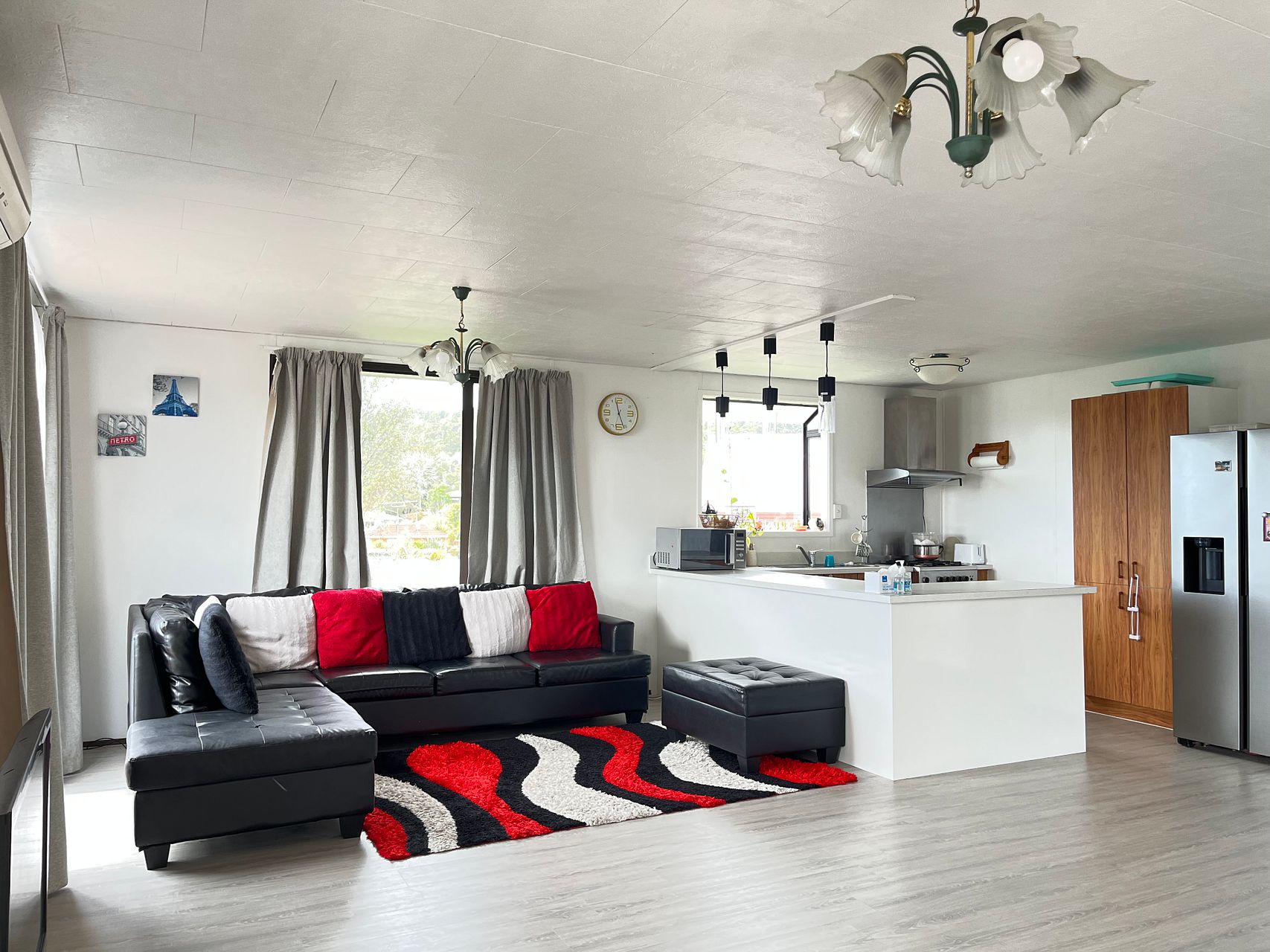 - The open plan kitchen, dining, and lounge flow on to a deck with views of the Waitakere ranges, great for entertaining.