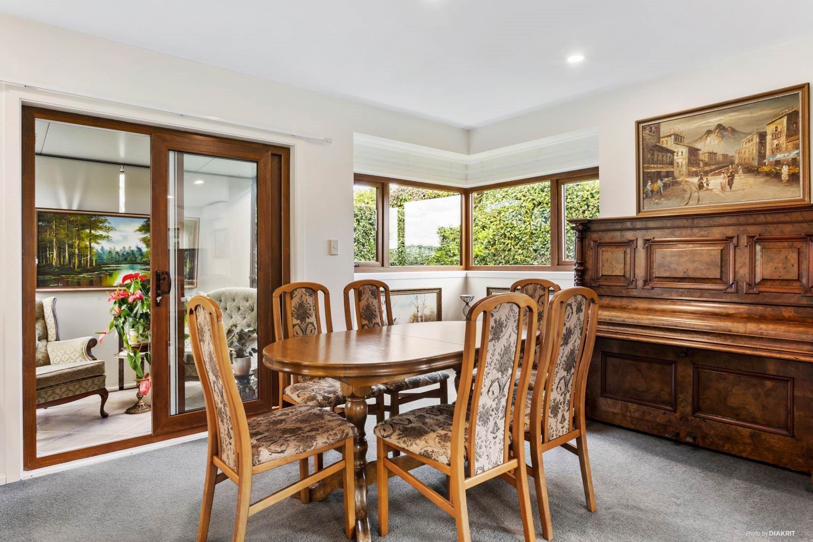 -As-new double-glazed windows. Being the rear house it's peaceful, sunny & extremely private with elevated wide views across the valley to the horizon, especially in the pretty North-facing back yard with wide decking & excellent outdoor flow from the living area.