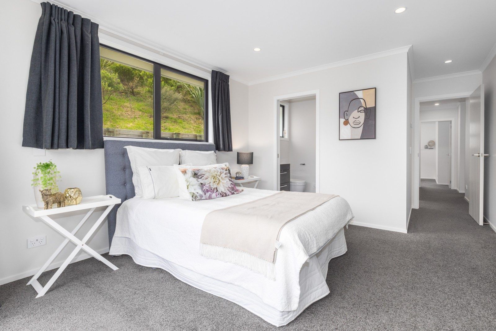 The indoor-outdoor flow leads to a large patio and fully fenced lawn, perfect for summer gatherings etc. Comprising three spacious double bedrooms and one single bedroom, the home is designed for modern family living, with tiled bathrooms featuring underfloor heating, gas ducted heating throughout, a separate laundry, and an insulated garage door. Double garage - internal access.