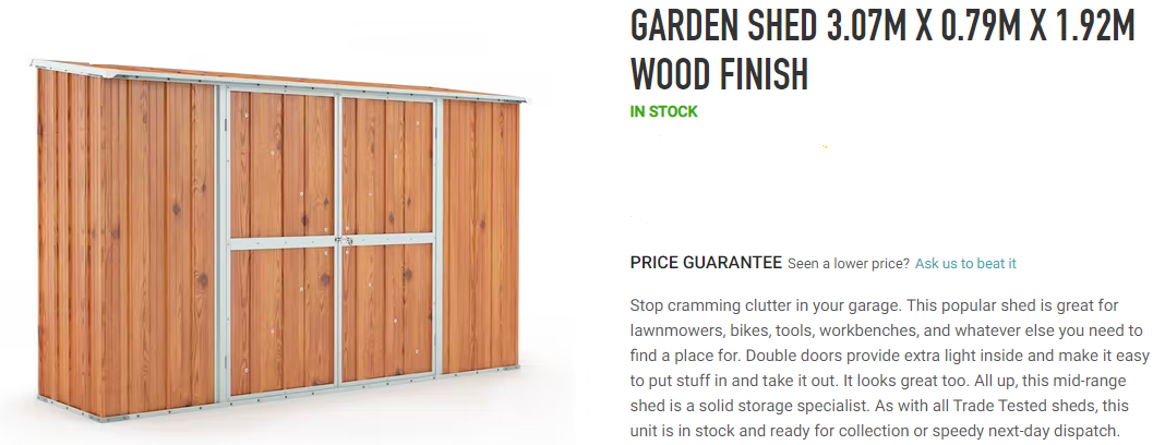 There will be a 3.07m X 0.79m X 1.92m shed installed at the property (see photo).