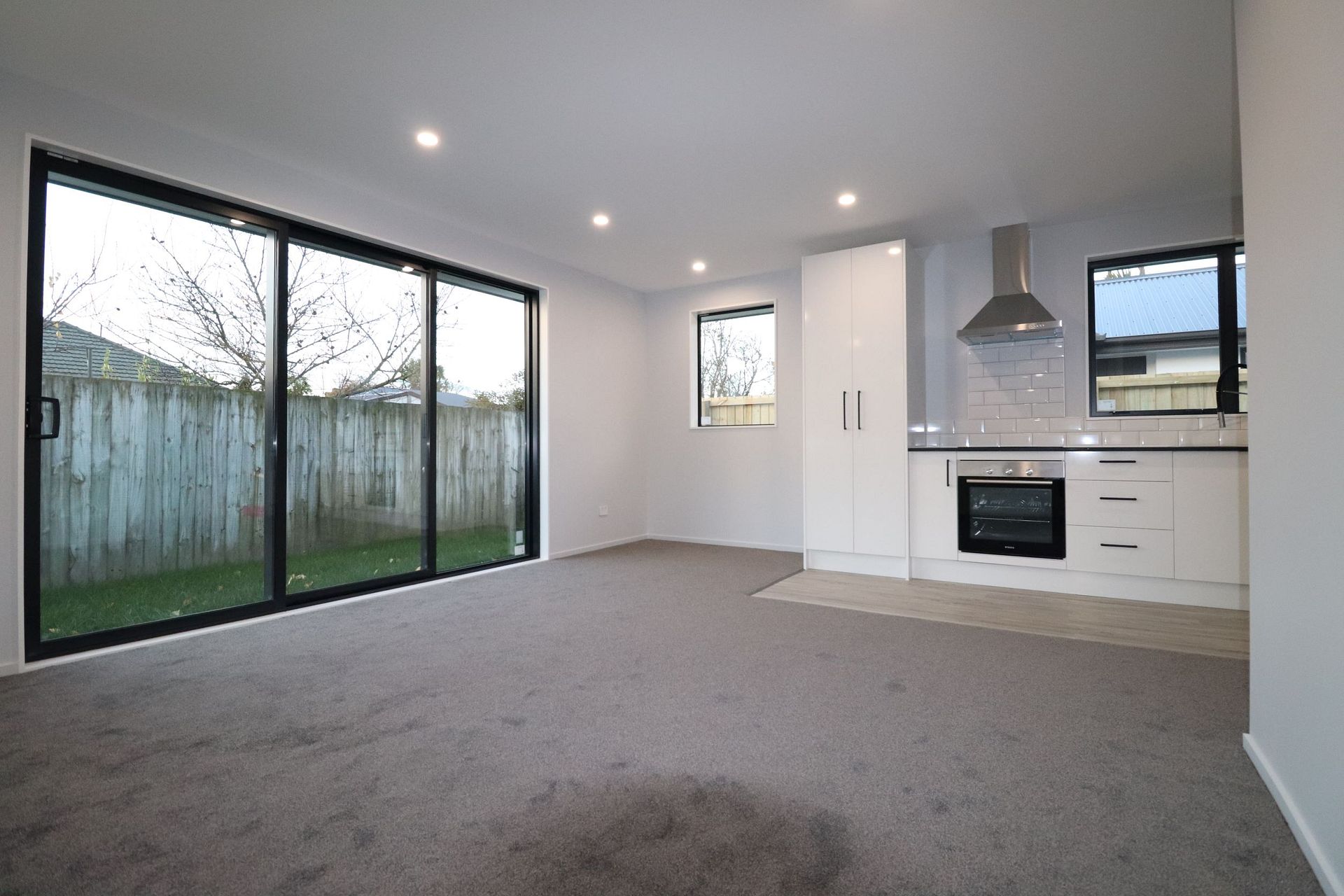 There is a good sized open plan living area that has a ranch slider which opens onto a private yard.