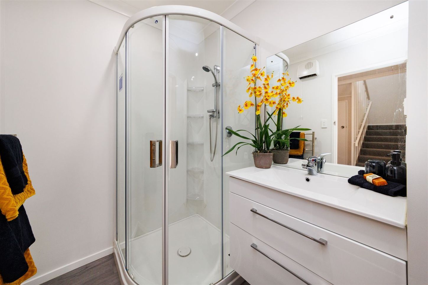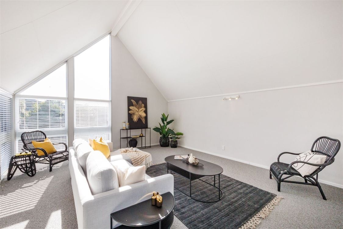 On the ground floor you'll find two double bedrooms, bathroom with shower and a separate laundry. Upstairs, you'll enjoy the enormous sense of space with floor-to-ceiling windows that flood the living with natural light, warmed/cooled by a heat pump and complemented by luscious carpet. The modern kitchen is positioned well for entertaining and has a large pantry, plus there is good storage throughout. The section portion is completely concreted to provide a rear patio, and off-street parking and internal access garage