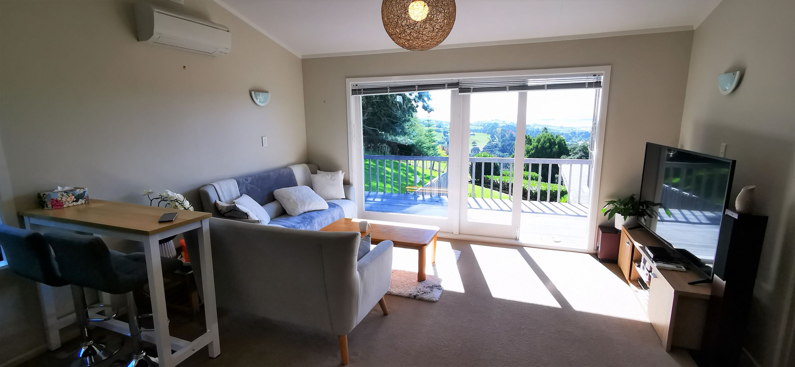 - Sunny, light-filled open plan dining, kitchen & living leading out to large deck with stunning views of the surrounding countryside and sea looking out to Waiheke Island.