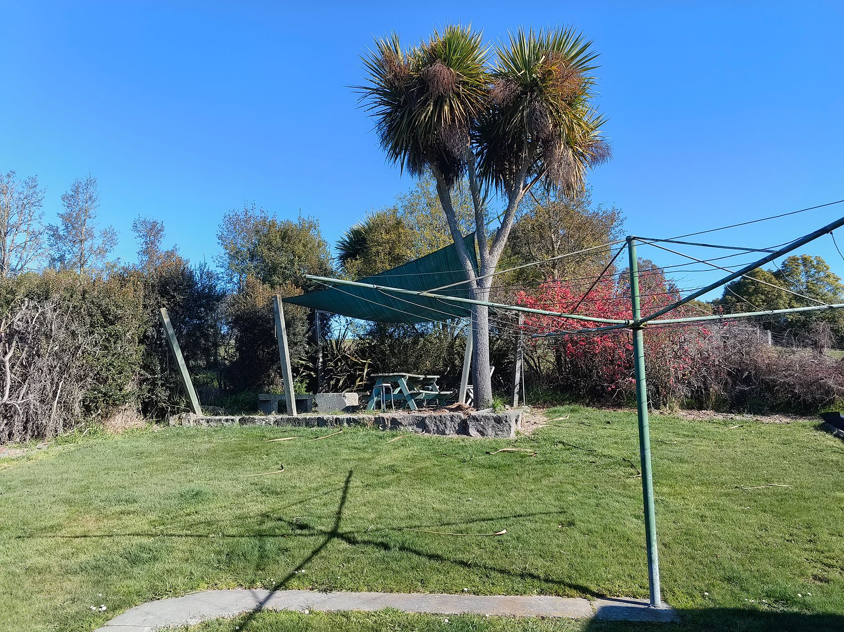 Outdoor Living: Enjoy a private, sunny patio complete with a picnic table and shade sail—perfect for relaxing or entertaining.