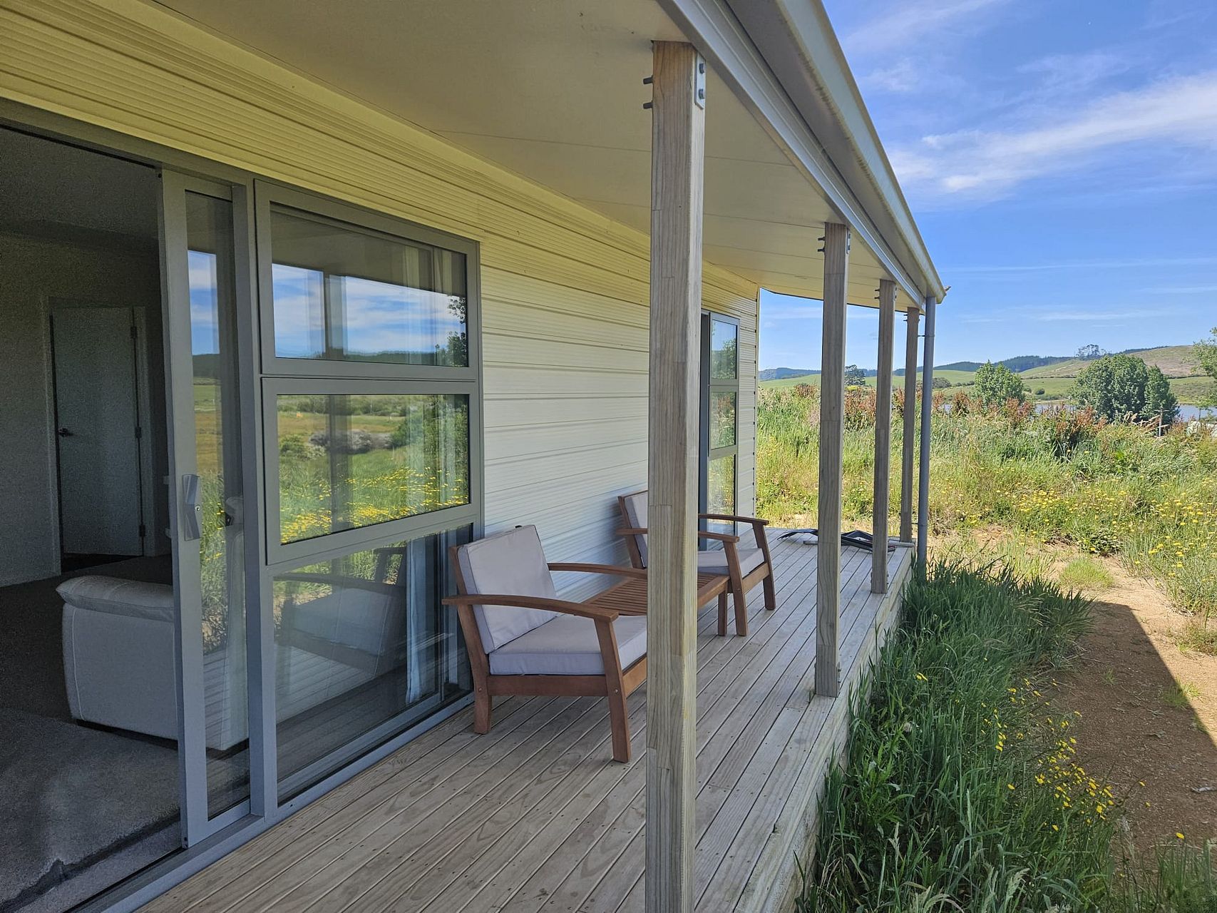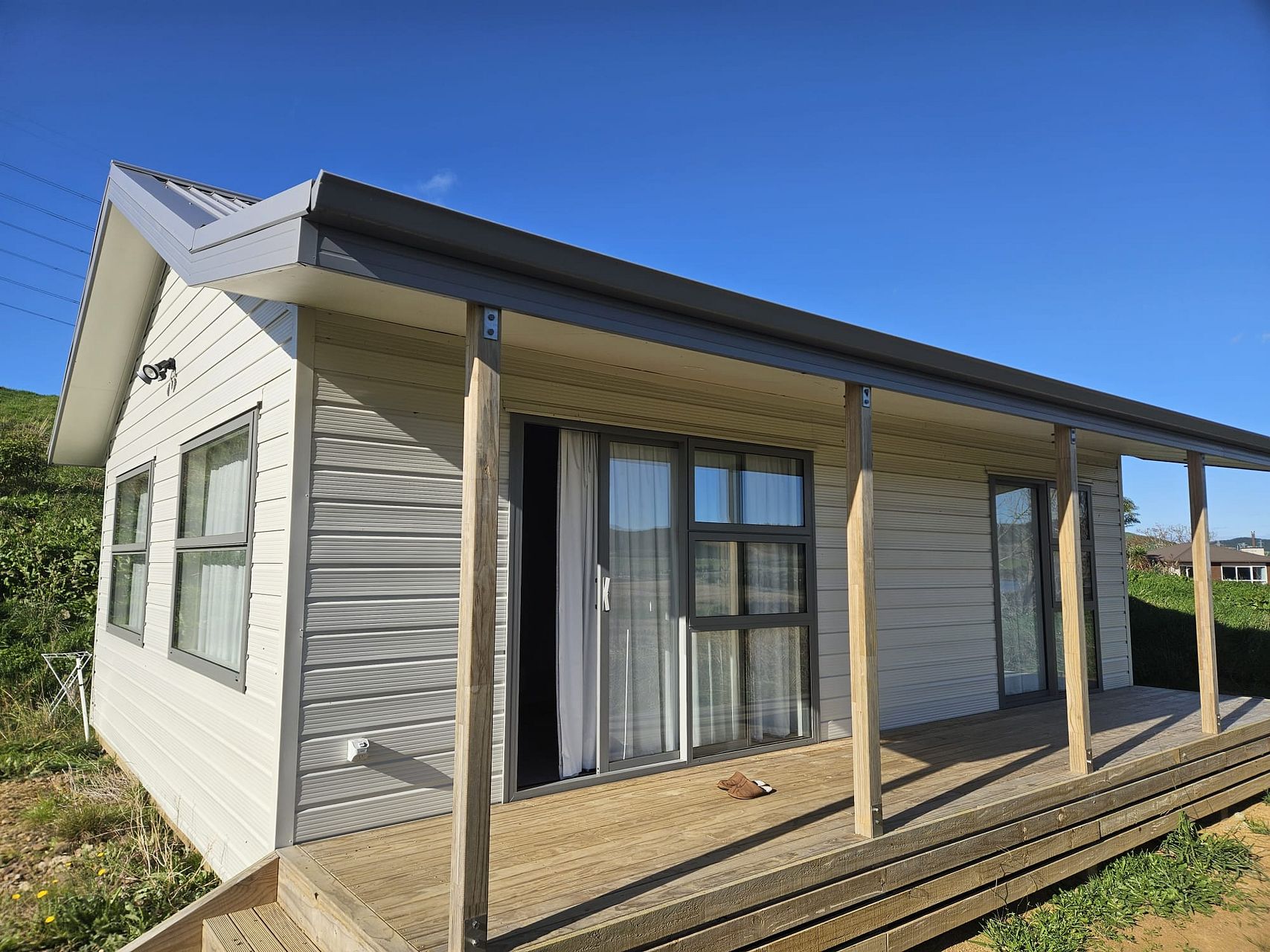 Small 2 bedroom newly built house with living room and open kitchen.