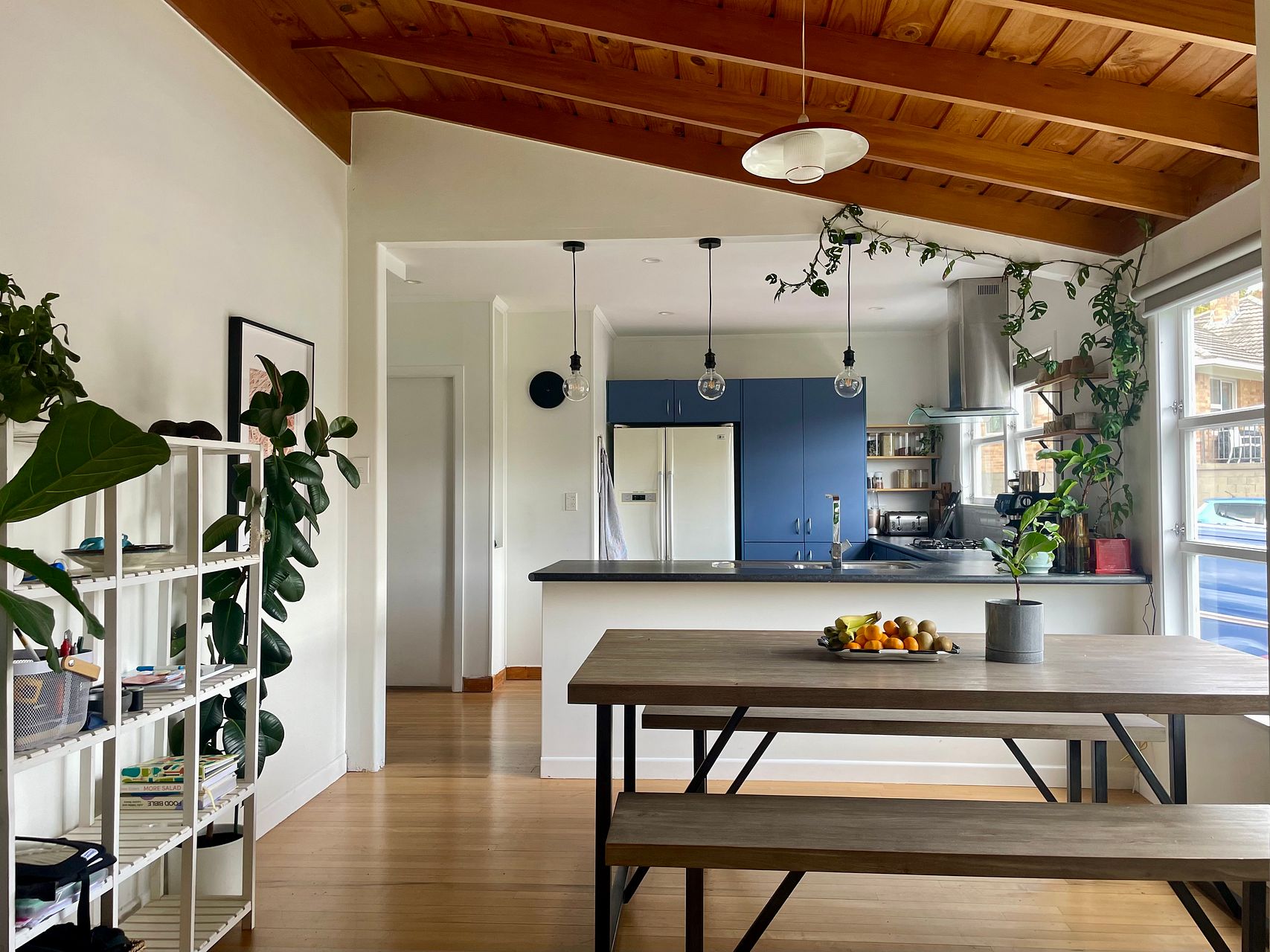 Open plan kitchen living and dining area. French doors from the lounge and 2 of the 3 bedrooms open up onto a north facing deck. The large lounge area features all day sun.