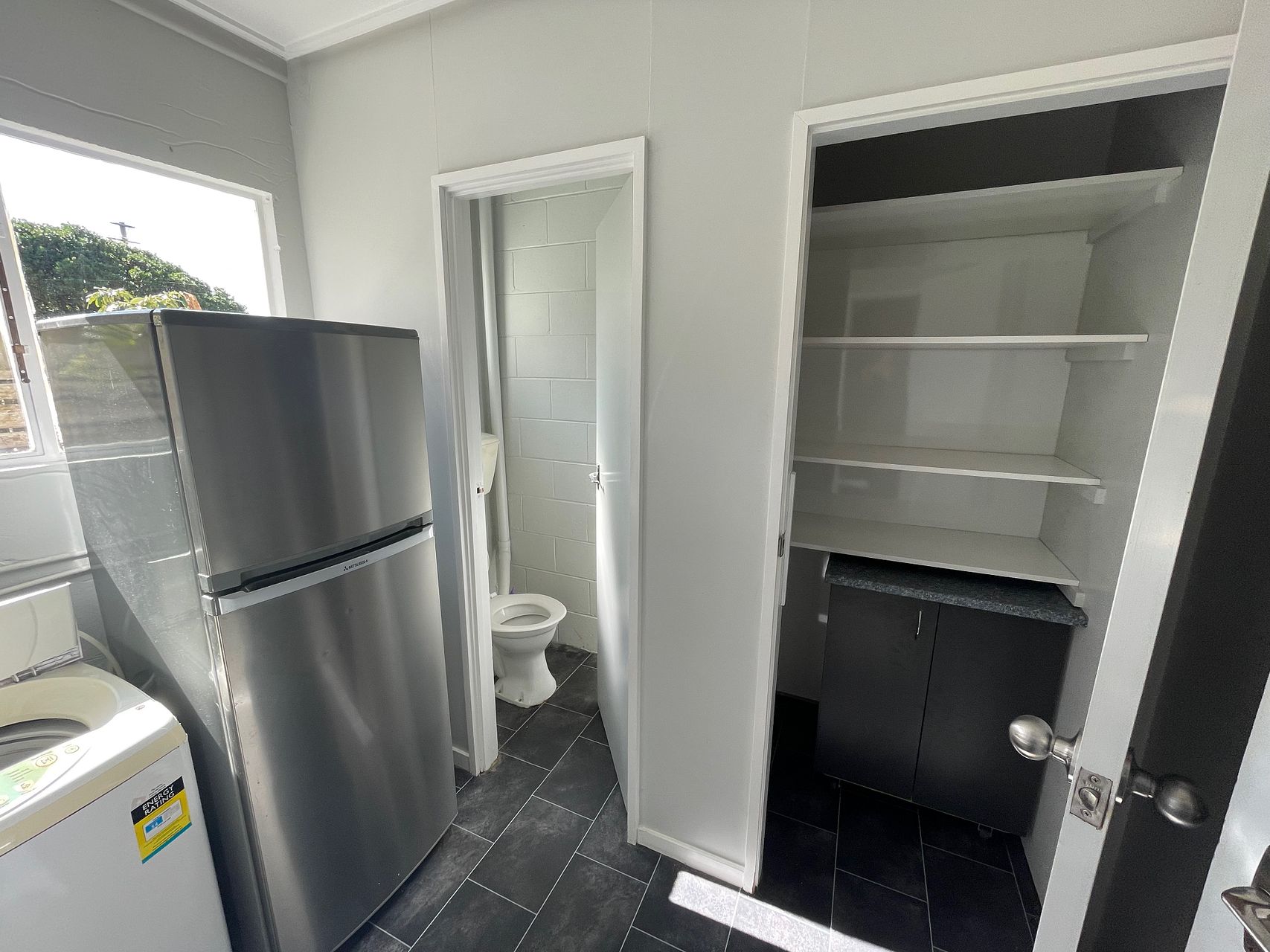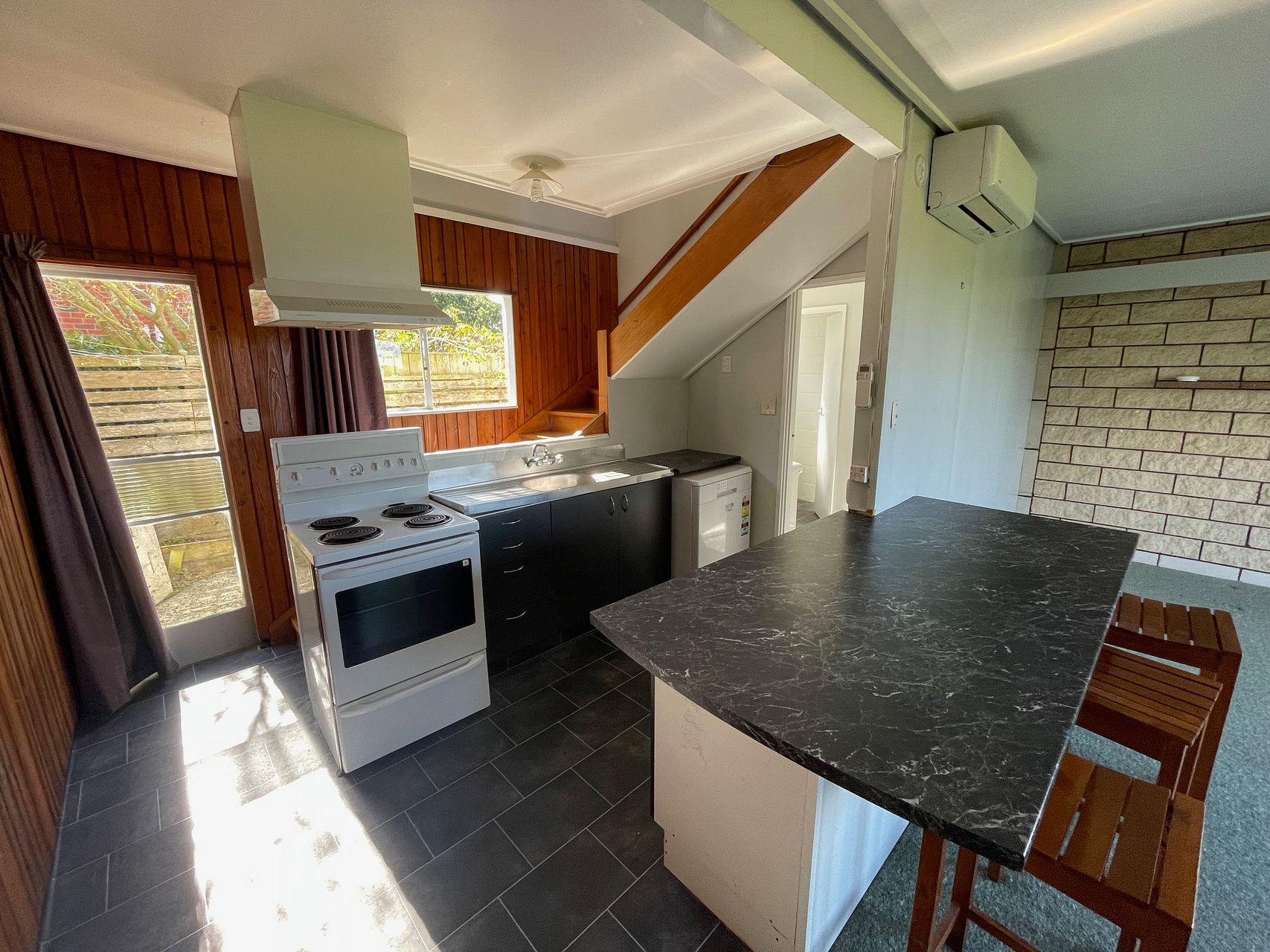 This property has a heatpump in the living room to keep you toasty. The built-in wardrobe offers ample storage space upstairs and a wee garden area out the back.